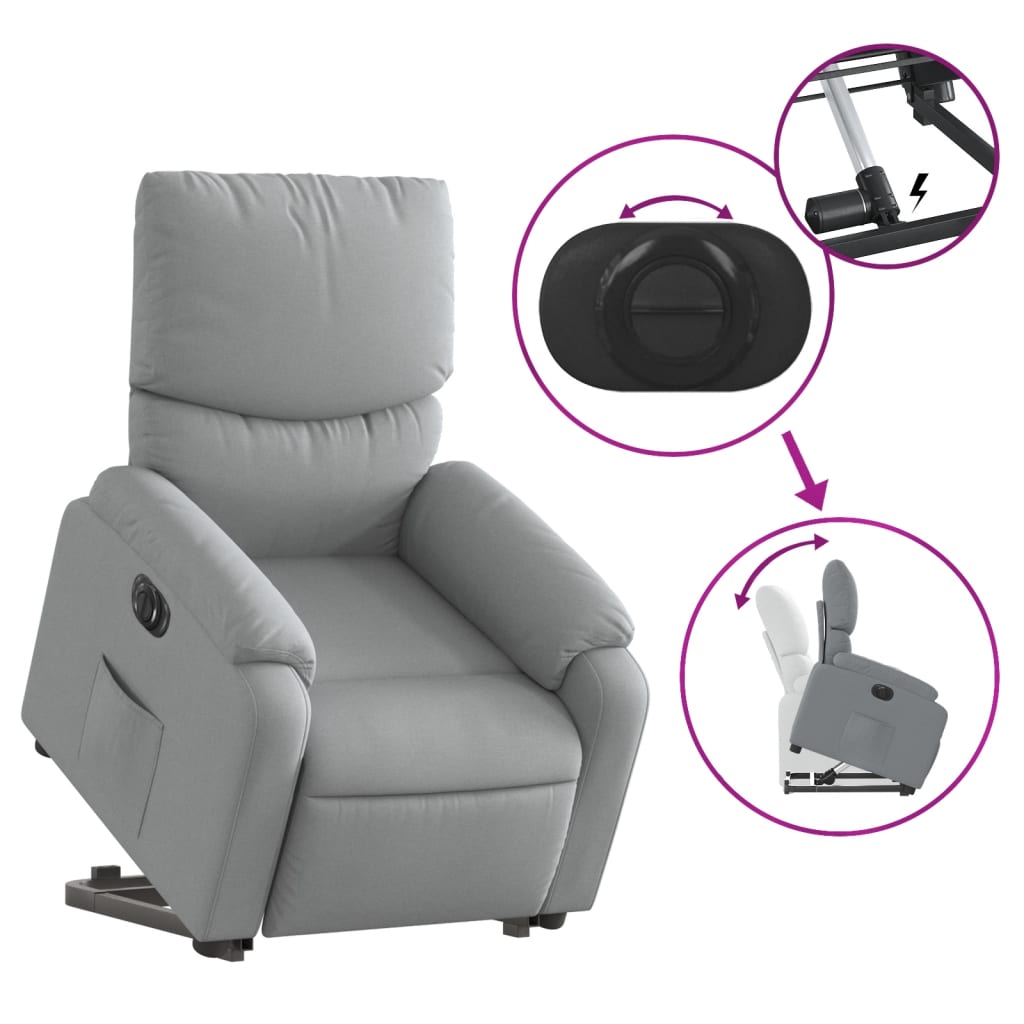 Lehne dich zurück und entspanne dich in diesem äußerst bequemen elektrischen Relaxsessel mit Aufstehhilfe! Elektrische Aufstehhilfe: Dieser Relaxsessel ist mit einem Elektromotor zum Anheben ausgestattet. Dank der Aufstehhilfe, die den gesamten Sessel nach oben bringt, kannst du ganz einfach auf Knopfdruck aufstehen, ohne deinen Rücken und deine Knie zu belasten.Elektrische Liegefunktion: Dieser Relaxsessel ist mit einem Elektromotor ausgestattet, der Fußstütze und Rückenlehne durch einfaches Drücken des seitlichen Knopfes automatisch in jede gewünschte Position bringt. Diese Funktion ermöglicht eine maximale Neigung von 135 Grad. Darüber hinaus lässt sich die Rückenlehne auf Knopfdruck automatisch in die ursprünglichen Position zurückbringen.Bequemes Sitzerlebnis: Die dick gepolsterte Sitzfläche, die Rückenlehne und die breiten Armlehnen sorgen für ein behagliches und wohliges Sitzgefühl. Der Bezug aus Stoff weist eine schlichte und saubere Optik auf und ist auch atmungsaktiv und langlebig.Praktische Seitentasche: Dieser Sessel verfügt über eine Seitentasche, in der du wichtige Sachen griffbereit aufbewahren kannst.Solider und stabiler Rahmen: Der Rahmen aus Holz und Metall sorgt für eine solide Struktur und hohe Stabilität. Dieser TV-Sessel ist bequem und langlebig.