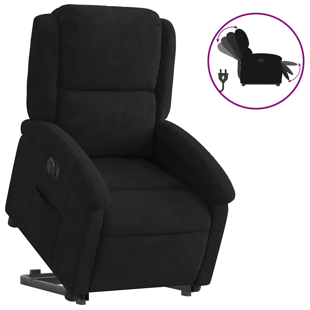 Lehne dich zurück und entspanne dich in diesem äußerst bequemen elektrischen Relaxsessel mit Aufstehhilfe! Elektrische Aufstehhilfe: Dieser Relaxsessel ist mit einem Elektromotor zum Anheben ausgestattet. Dank der Aufstehhilfe, die den gesamten Sessel nach oben bringt, kannst du ganz einfach auf Knopfdruck aufstehen, ohne deinen Rücken und deine Knie zu belasten.Elektrische Liegefunktion: Dieser Relaxsessel ist mit einem Elektromotor ausgestattet, der Fußstütze und Rückenlehne durch einfaches Drücken des seitlichen Knopfes automatisch in jede gewünschte Position bringt. Diese Funktion ermöglicht eine maximale Neigung von 135 Grad. Darüber hinaus lässt sich die Rückenlehne auf Knopfdruck automatisch in die ursprünglichen Position zurückbringen.Bequemes Sitzerlebnis: Der dick gepolsterte Sitz, die Rückenlehne und die breiten, mit Samt bezogenen Armlehnen sorgen für ein behagliches und warmes Gefühl, sodass du dich beim Sitzen wie umarmt fühlst. Samt ist ein weicher und bequemer Stoff, der sich angenehm auf der Haut anfühlt.Praktische Seitentasche: Dieser Sessel verfügt über eine Seitentasche, in der du wichtige Sachen griffbereit aufbewahren kannst.Solider und stabiler Rahmen: Der Rahmen aus Holz und Metall sorgt für eine solide Struktur und hohe Stabilität. Dieser TV-Sessel ist bequem und langlebig.