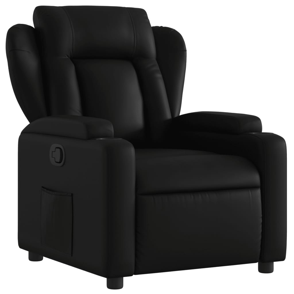 Lehne sich zurück und entspanne sich in diesem äußerst bequemen Relaxsessel! Manuelle Liegefunktion: Dieser Ruhesessel lässt sich mittels des seitlichen Griffs verstellen. So kannst du das Fußteil und die Rückenlehne manuell in jede beliebige Position bringen, um die komfortabelste Position zu genießen. Die Rückenlehne lässt sich max. 135 Grad nach hinten verstellen. Durch einfaches Ziehen am Griff wird sie schnell in die ursprüngliche Position zurückgestellt.Bequemes Sitzerlebnis: Die dick gepolsterte Sitzfläche, die Rückenlehne und die breiten, mit Kunstleder bezogenen Armlehnen sorgen für ein behagliches und angenehmes Sitzgefühl. Kunstleder ist ein äußerst langlebiges Material. Es ist schmutzabweisend und lässt sich mit einem feuchten Tuch einfach reinigen. Durch die glatte Oberfläche weist es die luxuriöse Schönheit von Echtleder auf.Praktische Getränkehalter und Seitentasche: Dieser Sessel verfügt über zwei praktische Becherhalter und eine Seitentasche, in der du wichtige Sachen griffbereit aufbewahren kannst.Solider und stabiler Rahmen: Der Rahmen aus Holz und Metall sorgt für eine solide Struktur und hohe Stabilität. Dieser TV-Sessel ist bequem und langlebig.