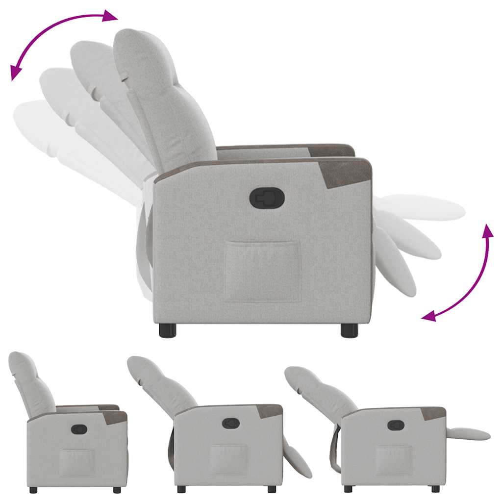 Lehne sich zurück und entspanne sich in diesem äußerst bequemen Relaxsessel! Manuelle Liegefunktion: Dieser Ruhesessel lässt sich mittels des Griffs an der rechten Seite verstellen. So kannst du das Fußteil und die Rückenlehne manuell in jede beliebige Position bringen, um höchsten Komfort zu genießen. Die Rückenlehne lässt sich max. 135 Grad nach hinten verstellen. Durch einfaches Ziehen lässt sie sich schnell wieder in die ursprüngliche Position bringen.Bequemes Sitzerlebnis: Die dick gepolsterte Sitzfläche, die Rückenlehne und die breiten Armlehnen sorgen für ein behagliches und wohliges Sitzgefühl. Der Bezug aus Stoff weist eine schlichte und saubere Optik auf und ist auch atmungsaktiv und langlebig.Praktische Seitentasche: Dieser Sessel verfügt über eine Seitentasche, in der du deine Fernbedienung oder andere wichtige Sachen griffbereit aufbewahren kannst.Solider und stabiler Rahmen: Der Rahmen aus Holz und Metall sorgt für eine solide Struktur und hohe Stabilität. Dieser TV-Sessel ist bequem und langlebig.