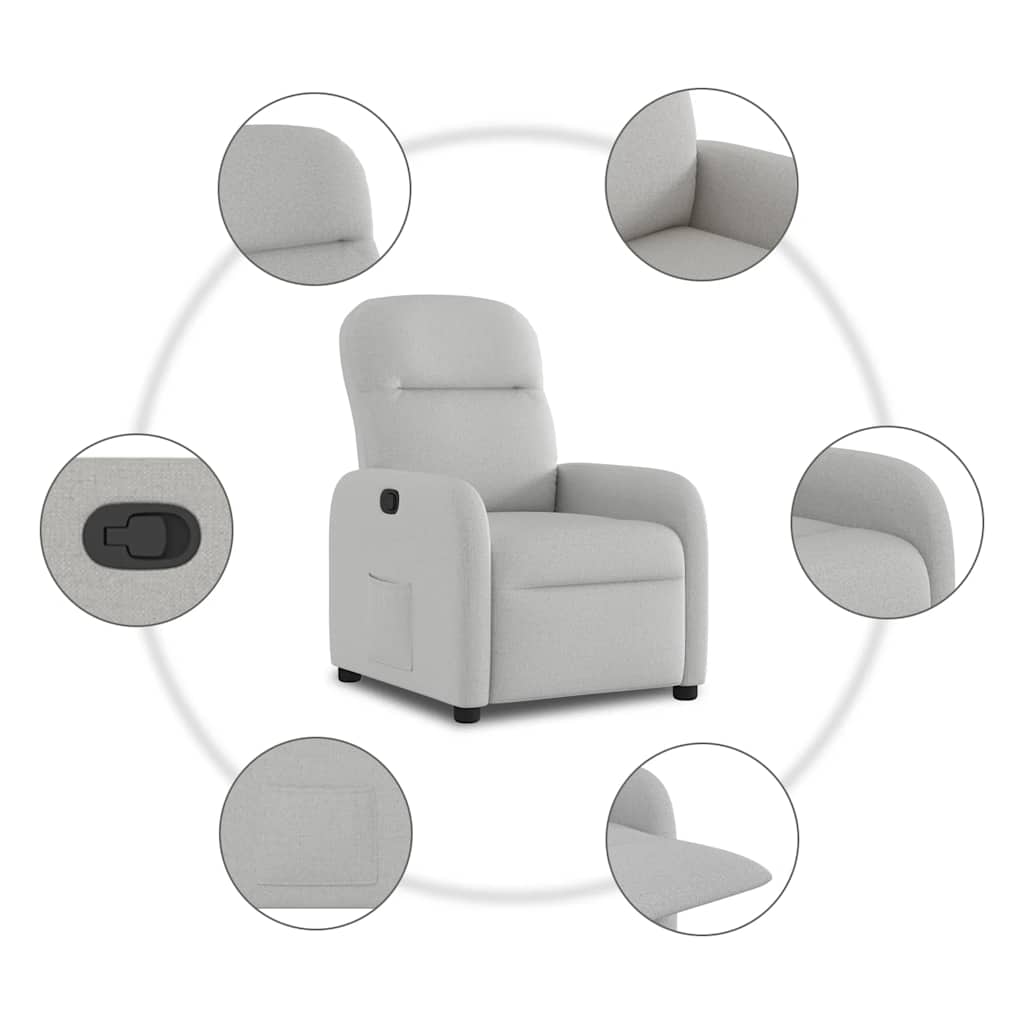 Lehne sich zurück und entspanne sich in diesem äußerst bequemen Relaxsessel! Manuelle Liegefunktion: Dieser Ruhesessel lässt sich mittels des Griffs an der rechten Seite verstellen. So kannst du das Fußteil und die Rückenlehne manuell in jede beliebige Position bringen, um höchsten Komfort zu genießen. Die Rückenlehne lässt sich max. 135 Grad nach hinten verstellen. Durch einfaches Ziehen lässt sie sich schnell wieder in die ursprüngliche Position bringen.Bequemes Sitzerlebnis: Die dick gepolsterte Sitzfläche, die Rückenlehne und die breiten Armlehnen sorgen für ein behagliches und wohliges Sitzgefühl. Der Bezug aus Stoff weist eine schlichte und saubere Optik auf und ist auch atmungsaktiv und langlebig.Praktische Seitentasche: Dieser Sessel verfügt über eine Seitentasche, in der du wichtige Sachen griffbereit aufbewahren kannst.Solider und stabiler Rahmen: Der Rahmen aus Holz und Metall sorgt für eine solide Struktur und hohe Stabilität. Dieser TV-Sessel ist bequem und langlebig.