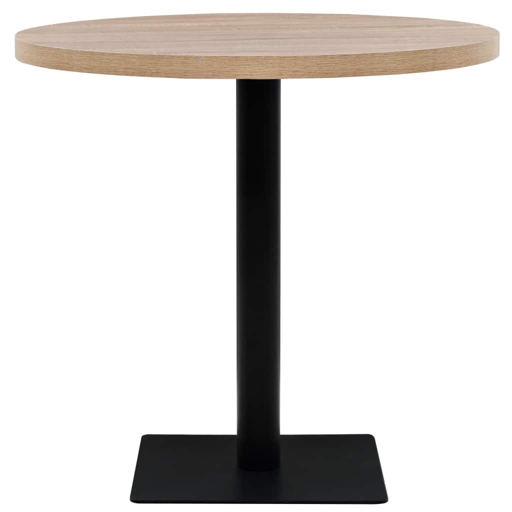 Schaffen Sie ein romantisches, französisches Ambiente mit diesem eleganten Bistrotisch. Die Tischplatte ist aus MDF mit gemaserter Oberfläche gefertigt und wird durch ein Stahlbein und Basis gestützt. Mit einem feuchten Tuch lässt sie sich ganz einfach reinigen. Verwenden Sie also den Tisch als Einzelstück in Ihrem Innenbereich, Restaurant Cafe bzw. Bar. Die Montage dieses Produkts geht leicht von Hand.