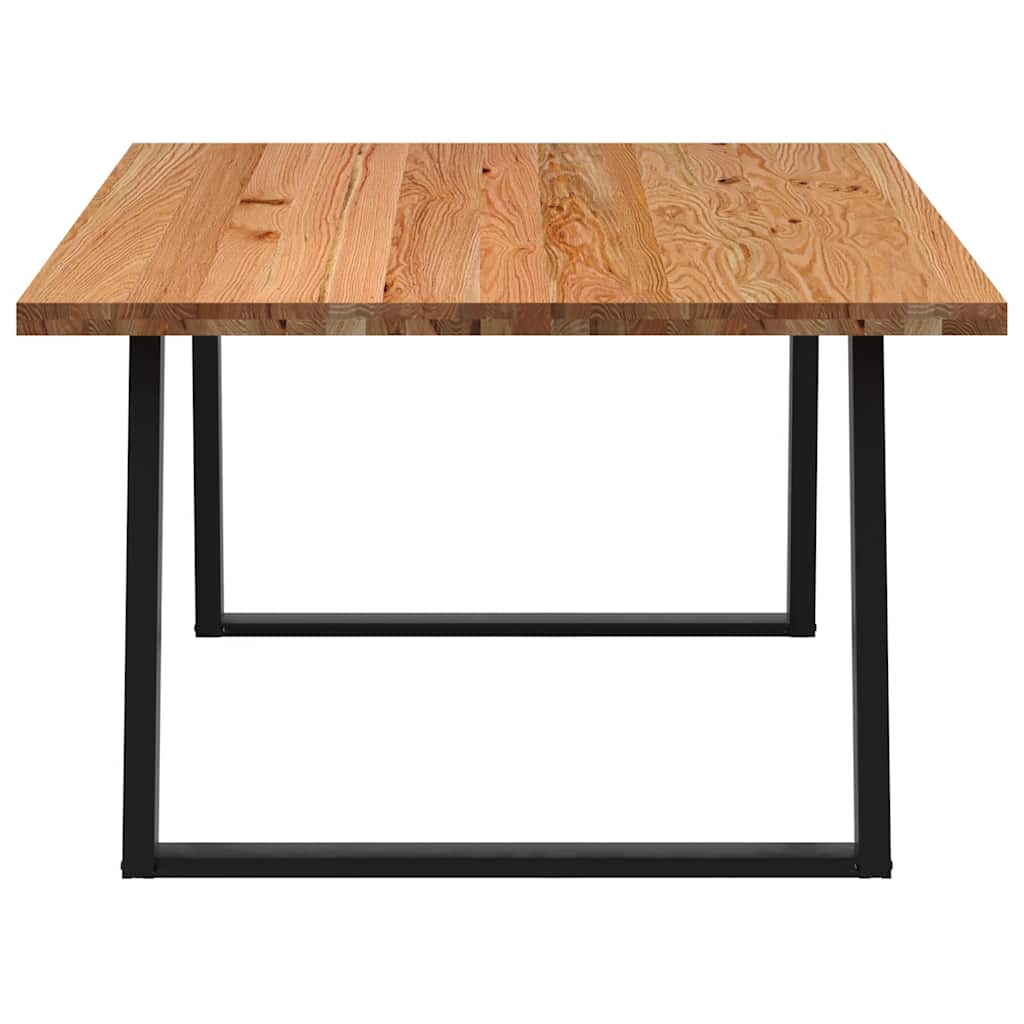 Mach jede Mahlzeit unvergesslich, indem du dich jeden Tag mit deiner Familie oder deinen Freunden um diesen Esstisch aus Holz versammelst! Robustes und langlebiges Material: Massives Eichenholz ist für seine Festigkeit, Haltbarkeit und schöne Maserung bekannt, weshalb es sich hervorragend für haltbare Möbel eignet. Durch seine natürliche Beständigkeit gegen Insektenbefall und Schimmelbildung sehen Eichenmöbel selbst nach jahrelangem Gebrauch brandneu aus.Großer Tisch: Dieser Tisch bietet mit seinen Maßen von 180 x 120 cm viel Platz zum Sitzen und ist das Herzstück deines Essbereichs.Einzigartiger Charme: Da Äste, Risse und Farbabweichungen natürliche Merkmale des Eichenholzes sind, hat jedes Stück dieses Produkts seinen ganz eigenen Charme. Auf den Bildern siehst du Beispiele für die zu erwartenden Variationen.Praktisches Design: Diese Esstischbeine sind mit verstellbaren Nivellierfüßen ausgestattet, die auch auf unebenen Böden für Stabilität sorgen und Bodenkratzer minimieren. Außerdem verfügt die Halterung über vorgebohrte Löcher und mitgelieferte Schrauben, mit denen das Bein an der Tischplatte befestigt werden kann, was die Montage erleichtert.Robustes und stabiles Gestell: Dieser Esszimmertisch hat U-förmige Beine aus pulverbeschichtetem Stahl, die für außergewöhnliche Stabilität und Sicherheit sorgen. Gut zu wissen:Jedes Stück ist ein Unikat, das in Farbe und Maserung variiert. Die Lieferung erfolgt in zufälliger Reihenfolge, wodurch die Exklusivität und Individualität deines Produkts gewährleistet wird.Äste und kleinere Fehler werden mit schwarzem Füllmaterial aufgefüllt, um eine schöne und glatte Tischoberfläche zu erhalten. Beispiele findest du in den Abbildungen.Die Tischplatte ist an den Rändern 4 cm dick, um ein robustes Aussehen zu gewährleisten, und in der Mitte 2 cm dick, um den Holzverbrauch und das Gesamtgewicht zu reduzieren.Bitte bohre die Löcher in der Mitte, nicht an den Rändern der Platte.Bitte achte darauf, die maximale Bohrtiefe von 15 mm nicht zu überschreiten, um die Tischplatte nicht zu beschädigen, da die Plattenstärke 20 mm beträgt.Wir empfehlen, einen Schraubendreher anstelle einer elektrischen Bohrmaschine zu verwenden, um Holzrisse beim Anbringen der Beine zu vermeiden.