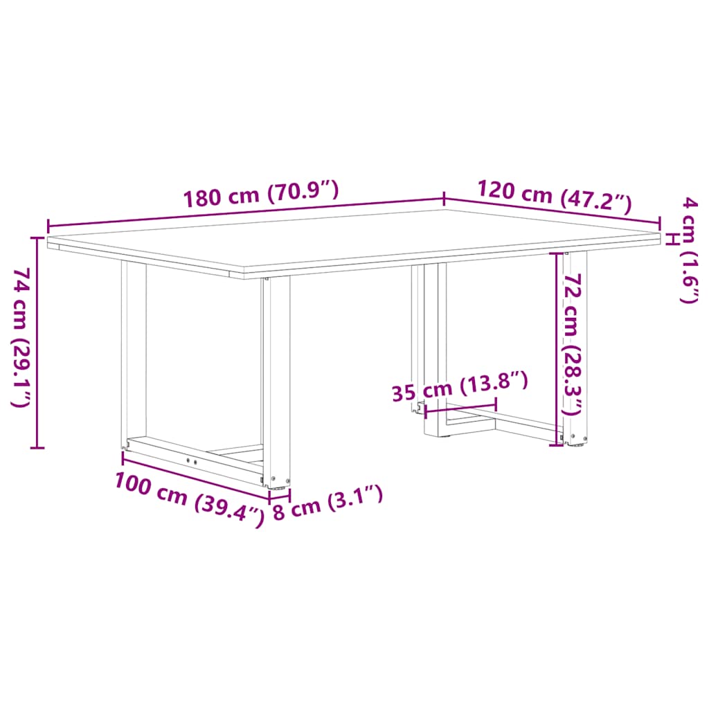 Mach jede Mahlzeit unvergesslich, indem du dich jeden Tag mit deiner Familie oder deinen Freunden um diesen Esstisch aus Holz versammelst! Robustes und langlebiges Material: Massives Eichenholz ist für seine Festigkeit, Haltbarkeit und schöne Maserung bekannt, weshalb es sich hervorragend für haltbare Möbel eignet. Durch seine natürliche Beständigkeit gegen Insektenbefall und Schimmelbildung sehen Eichenmöbel selbst nach jahrelangem Gebrauch brandneu aus.Großer Tisch: Dieser Küchentisch bietet mit seinen Maßen von 180 x 120 cm viel Platz zum Sitzen und ist das Herzstück deines Essbereichs.Einzigartiger Charme: Da Äste, Risse und Farbabweichungen natürliche Merkmale des Eichenholzes sind, hat jedes Stück dieses Produkts seinen ganz eigenen Charme. Auf den Bildern siehst du Beispiele für die zu erwartenden Variationen.Praktisches Design: Diese Esstischbeine sind mit verstellbaren Nivellierfüßen ausgestattet, die auch auf unebenen Böden für Stabilität sorgen und Bodenkratzer minimieren. Außerdem verfügt die Halterung über vorgebohrte Löcher und mitgelieferte Schrauben, mit denen das Bein an der Tischplatte befestigt werden kann, was die Montage erleichtert. Gut zu wissen:Jedes Stück ist ein Unikat, das in Farbe und Maserung variiert. Die Lieferung erfolgt in zufälliger Reihenfolge, wodurch die Exklusivität und Individualität deines Produkts gewährleistet wird.Äste und kleinere Fehler werden mit schwarzem Füllmaterial aufgefüllt, um eine schöne und glatte Tischoberfläche zu erhalten. Beispiele findest du in den Abbildungen.Die Tischplatte ist an den Rändern 4 cm dick, um ein robustes Aussehen zu gewährleisten, und in der Mitte 2 cm dick, um den Holzverbrauch und das Gesamtgewicht zu reduzieren.Bitte bohre die Löcher in der Mitte, nicht an den Rändern der Platte.Bitte achte darauf, die maximale Bohrtiefe von 15 mm nicht zu überschreiten, um die Tischplatte nicht zu beschädigen, da die Plattenstärke 20 mm beträgt.Wir empfehlen, einen Schraubendreher anstelle einer elektrischen Bohrmaschine zu verwenden, um Holzrisse beim Anbringen der Beine zu vermeiden.
