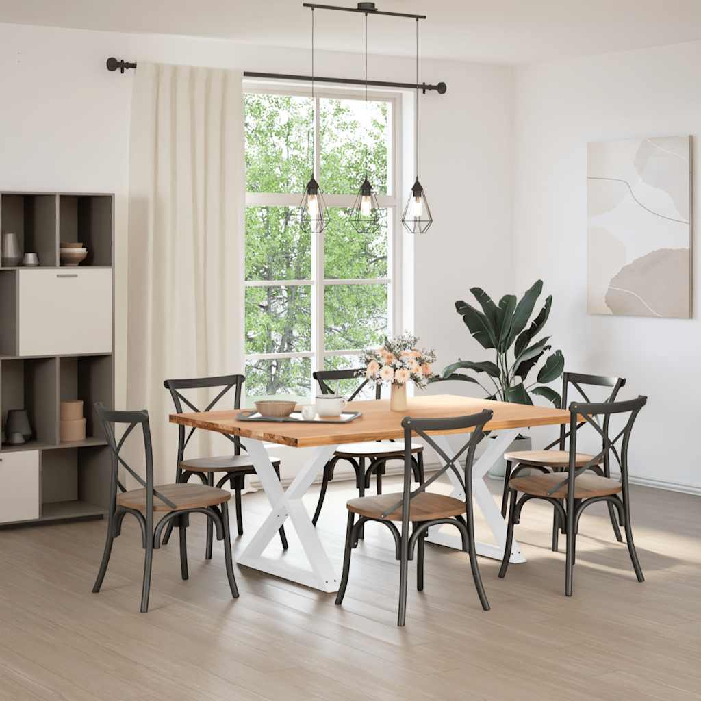 Mach jede Mahlzeit unvergesslich, indem du dich jeden Tag mit deiner Familie oder deinen Freunden um diesen Esstisch aus Holz versammelst! Robustes und langlebiges Material: Massives Eichenholz ist für seine Festigkeit, Haltbarkeit und schöne Maserung bekannt, weshalb es sich hervorragend für haltbare Möbel eignet. Durch seine natürliche Beständigkeit gegen Insektenbefall und Schimmelbildung sehen Eichenmöbel selbst nach jahrelangem Gebrauch brandneu aus.Großer Tisch: Dieser Küchentisch bietet mit seinen Maßen von 180 x 120 cm viel Platz zum Sitzen und ist das Herzstück deines Essbereichs.Einzigartiger Charme: Da Äste, Risse und Farbabweichungen natürliche Merkmale des Eichenholzes sind, hat jedes Stück dieses Produkts seinen ganz eigenen Charme. Auf den Bildern siehst du Beispiele für die zu erwartenden Variationen.Praktisches Design: Diese Esstischbeine sind mit verstellbaren Nivellierfüßen ausgestattet, die auch auf unebenen Böden für Stabilität sorgen und Bodenkratzer minimieren. Außerdem verfügt die Halterung über vorgebohrte Löcher und mitgelieferte Schrauben, mit denen das Bein an der Tischplatte befestigt werden kann, was die Montage erleichtert. Gut zu wissen:Jedes Stück ist ein Unikat, das in Farbe und Maserung variiert. Die Lieferung erfolgt in zufälliger Reihenfolge, wodurch die Exklusivität und Individualität deines Produkts gewährleistet wird.Äste und kleinere Fehler werden mit schwarzem Füllmaterial aufgefüllt, um eine schöne und glatte Tischoberfläche zu erhalten. Beispiele findest du in den Abbildungen.Die Tischplatte ist an den Rändern 4 cm dick, um ein robustes Aussehen zu gewährleisten, und in der Mitte 2 cm dick, um den Holzverbrauch und das Gesamtgewicht zu reduzieren.Bitte bohre die Löcher in der Mitte, nicht an den Rändern der Platte.Bitte achte darauf, die maximale Bohrtiefe von 15 mm nicht zu überschreiten, um die Tischplatte nicht zu beschädigen, da die Plattenstärke 20 mm beträgt.Wir empfehlen, einen Schraubendreher anstelle einer elektrischen Bohrmaschine zu verwenden, um Holzrisse beim Anbringen der Beine zu vermeiden.
