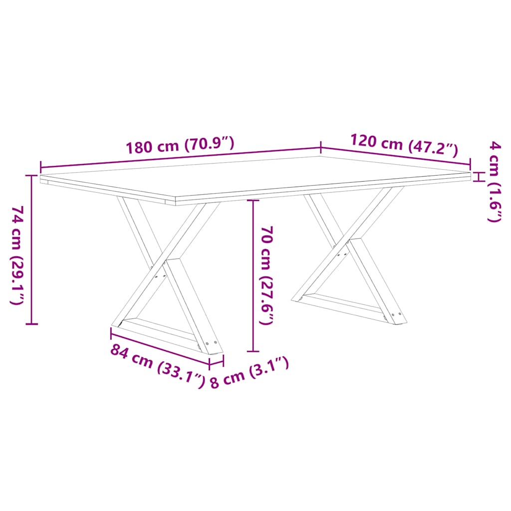 Mach jede Mahlzeit unvergesslich, indem du dich jeden Tag mit deiner Familie oder deinen Freunden um diesen Esstisch aus Holz versammelst! Robustes und langlebiges Material: Massives Eichenholz ist für seine Festigkeit, Haltbarkeit und schöne Maserung bekannt, weshalb es sich hervorragend für haltbare Möbel eignet. Durch seine natürliche Beständigkeit gegen Insektenbefall und Schimmelbildung sehen Eichenmöbel selbst nach jahrelangem Gebrauch brandneu aus.Großer Tisch: Dieser Küchentisch bietet mit seinen Maßen von 180 x 120 cm viel Platz zum Sitzen und ist das Herzstück deines Essbereichs.Einzigartiger Charme: Da Äste, Risse und Farbabweichungen natürliche Merkmale des Eichenholzes sind, hat jedes Stück dieses Produkts seinen ganz eigenen Charme. Auf den Bildern siehst du Beispiele für die zu erwartenden Variationen.Praktisches Design: Diese Esstischbeine sind mit verstellbaren Nivellierfüßen ausgestattet, die auch auf unebenen Böden für Stabilität sorgen und Bodenkratzer minimieren. Außerdem verfügt die Halterung über vorgebohrte Löcher und mitgelieferte Schrauben, mit denen das Bein an der Tischplatte befestigt werden kann, was die Montage erleichtert. Gut zu wissen:Jedes Stück ist ein Unikat, das in Farbe und Maserung variiert. Die Lieferung erfolgt in zufälliger Reihenfolge, wodurch die Exklusivität und Individualität deines Produkts gewährleistet wird.Äste und kleinere Fehler werden mit schwarzem Füllmaterial aufgefüllt, um eine schöne und glatte Tischoberfläche zu erhalten. Beispiele findest du in den Abbildungen.Die Tischplatte ist an den Rändern 4 cm dick, um ein robustes Aussehen zu gewährleisten, und in der Mitte 2 cm dick, um den Holzverbrauch und das Gesamtgewicht zu reduzieren.Bitte bohre die Löcher in der Mitte, nicht an den Rändern der Platte.Bitte achte darauf, die maximale Bohrtiefe von 15 mm nicht zu überschreiten, um die Tischplatte nicht zu beschädigen, da die Plattenstärke 20 mm beträgt.Wir empfehlen, einen Schraubendreher anstelle einer elektrischen Bohrmaschine zu verwenden, um Holzrisse beim Anbringen der Beine zu vermeiden.