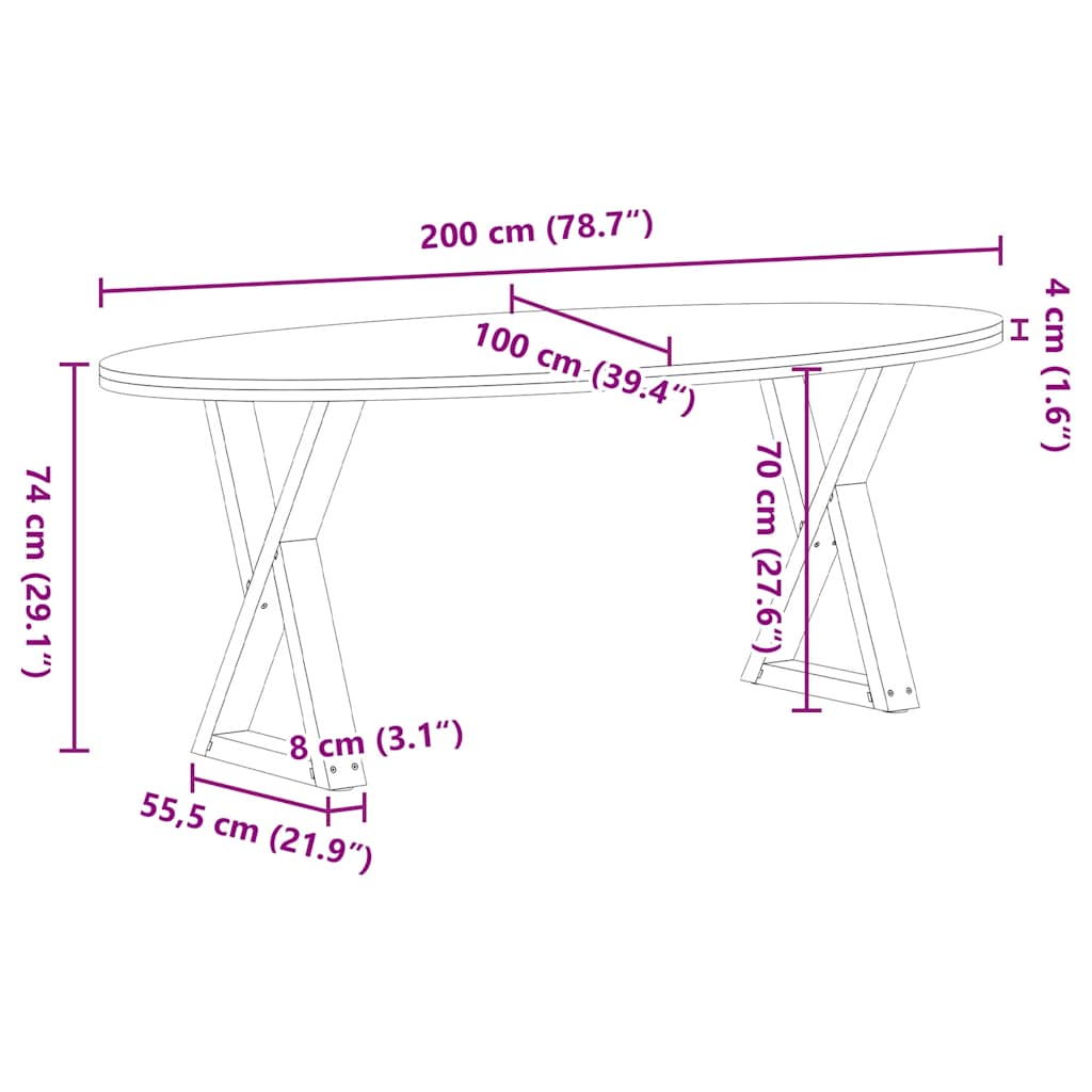 Mach jede Mahlzeit unvergesslich, indem du dich jeden Tag mit deiner Familie oder deinen Freunden um diesen Esstisch aus Holz versammelst! Robustes und langlebiges Material: Massives Eichenholz ist für seine Festigkeit, Haltbarkeit und schöne Maserung bekannt, weshalb es sich hervorragend für haltbare Möbel eignet. Durch seine natürliche Beständigkeit gegen Insektenbefall und Schimmelbildung sehen Eichenmöbel selbst nach jahrelangem Gebrauch brandneu aus.Großer Tisch: Dieser Tisch bietet mit seinen Maßen von 200 x 100 cm viel Platz zum Sitzen und ist das Herzstück deines Essbereichs.Einzigartiger Charme: Da Äste, Risse und Farbabweichungen natürliche Merkmale des Eichenholzes sind, hat jedes Stück dieses Produkts seinen ganz eigenen Charme. Auf den Bildern siehst du Beispiele für die zu erwartenden Variationen.Praktisches Design: Diese Esstischbeine sind mit verstellbaren Nivellierfüßen ausgestattet, die auch auf unebenen Böden für Stabilität sorgen und Bodenkratzer minimieren. Außerdem verfügt die Halterung über vorgebohrte Löcher und mitgelieferte Schrauben, mit denen das Bein an der Tischplatte befestigt werden kann, was die Montage erleichtert.Robustes und stabiles Gestell: Die Beine dieses Esszimmertischs sind aus pulverbeschichtetem Stahl gefertigt, der für außergewöhnliche Stabilität und Sicherheit sorgt. Gut zu wissen:Jedes Stück ist ein Unikat, das in Farbe und Maserung variiert. Die Lieferung erfolgt in zufälliger Reihenfolge, wodurch die Exklusivität und Individualität deines Produkts gewährleistet wird.Äste und kleinere Fehler werden mit schwarzem Füllmaterial aufgefüllt, um eine schöne und glatte Tischoberfläche zu erhalten. Beispiele findest du in den Abbildungen.Die Tischplatte ist an den Rändern 4 cm dick, um ein robustes Aussehen zu gewährleisten, und in der Mitte 2 cm dick, um den Holzverbrauch und das Gesamtgewicht zu reduzieren.Bitte bohre die Löcher in der Mitte, nicht an den Rändern der Platte.Bitte achte darauf, die maximale Bohrtiefe von 15 mm nicht zu überschreiten, um die Tischplatte nicht zu beschädigen, da die Plattenstärke 20 mm beträgt.Wir empfehlen, einen Schraubendreher anstelle einer elektrischen Bohrmaschine zu verwenden, um Holzrisse beim Anbringen der Beine zu vermeiden.