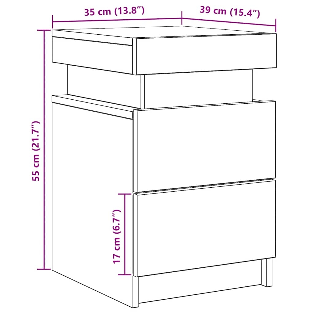 Mit ihrem stilvollen Design fügen sich diese Nachttische harmonisch in dein Schlaf- oder Wohnzimmer ein und verleihen deinem Interieur einen zeitlosen Charme. Langlebiges Material: Holzwerkstoff ist ein Material außergewöhnlicher Qualität mit glatter Oberfläche. Er zeichnet sich durch Festigkeit, Stabilität und Feuchtigkeitsbeständigkeit aus.Viel Stauraum: Der Nachttisch ist mit einer Schublade versehen und bietet viel Platz, um verschiedene Alltagssachen gut organisiert und in Reichweite aufzubewahren.RGB-LED-Beleuchtung für ein angenehmes Ambiente: Dieser Beistelltisch verfügt über LED-Leuchten, die einfach eingestellt werden können, um eine personalisierte Lichtshow zu erzeugen. Du kannst die Modi, Farben und Helligkeit anpassen, um das gewünschte Ambiente in deinem Interieur zu schaffen.Pflegeleicht: Dank seiner glatten Oberfläche lässt sich der Bettschrank mit einem feuchten Tuch leicht reinigen und erfordert wenig Pflege. Achtung:Um ein Umkippen zu vermeiden, sollte dieses Produkt mit der mitgelieferten Wandhalterung gesichert werden.Gut zu wissen:Das Produkt verfügt über einen USB-Anschluss, für den eine zertifizierte 5V-USB-Stromquelle erforderlich ist (nicht im Lieferumfang enthalten).