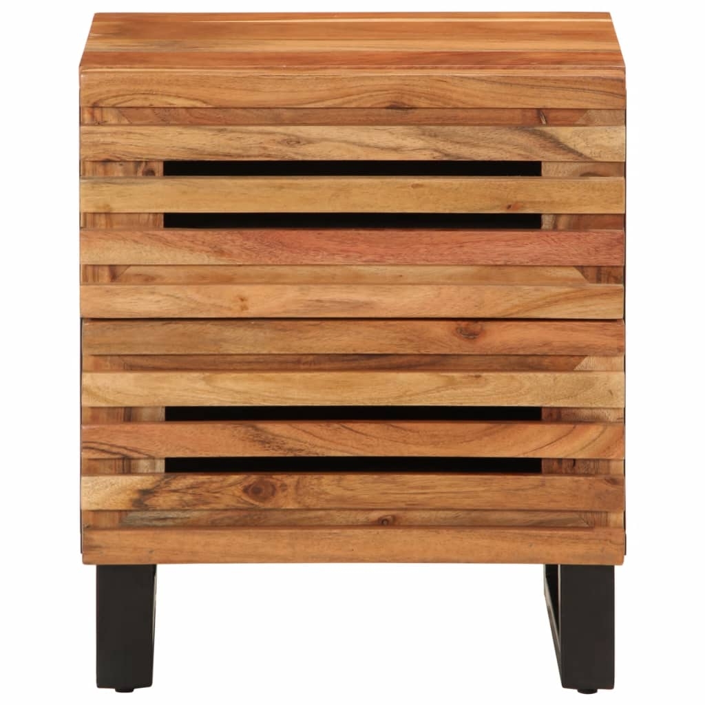 Dieser Holz-Nachttisch ist eine dekorative und praktische Ergänzung zu Ihrer Einrichtung. Akazie-Massivholz: Massives Akazienholz ist für seine Stärke und Haltbarkeit bekannt. Seine vielfältigen Farben und einzigartigen Maserungen verleihen dem Holz eine attraktive Ausstrahlung. Dank seiner Robustheit und Witterungsbeständigkeit ist es ideal für die Herstellung von Möbeln für den Innen- und Außenbereich.Viel Stauraum: Der Nachtschrank verfügt über 2 Schubladen und bietet dadurch reichlich Stauraum, um deine Bücher, Zeitschriften und Dekoartikel aufzubewahren und zur Schau zu stellen.Stabile und langlebige Beine: Diese Nachtkonsole wird von stabilen Beinen getragen, die für Stabilität, Sicherheit und Festigkeit sorgen.