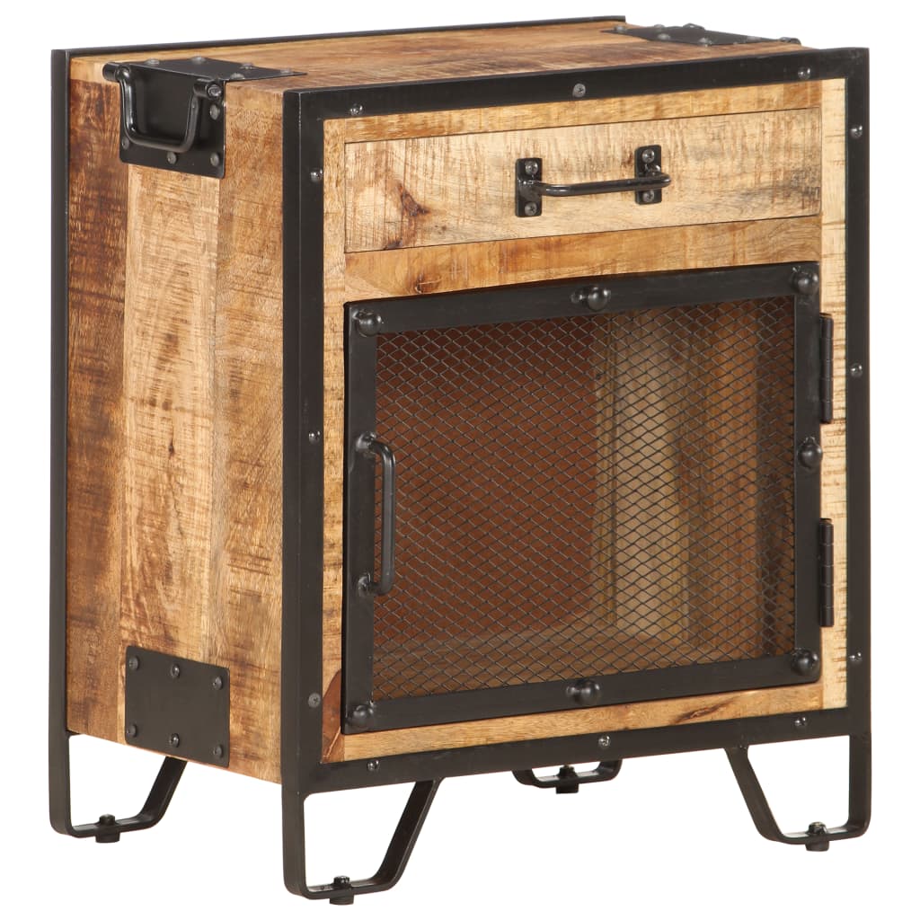 Dieser Holz-Nachttisch ist eine dekorative und praktische Ergänzung zu Ihrer Einrichtung. Der Nachtschrank ist handgefertigt aus rauem Mangoholz, wodurch er robust und stabil ist. Die Handwerkskunst und die schöne Holzmaserung machen jedes Möbelstück zu einem Unikat. Darüber hinaus bietet dieser Nachttisch ausreichend Stauraum, um Ihre wichtigen Sachen organisiert und in Reichweite zu halten. Der Nachttisch ist zudem leicht zu montieren. Wichtiger Hinweis: Farbe und Maserung variieren von Stück zu Stück, so dass jedes Möbelstück einzigartig ist. Die Lieferung erfolgt nach dem Zufallsprinzip.