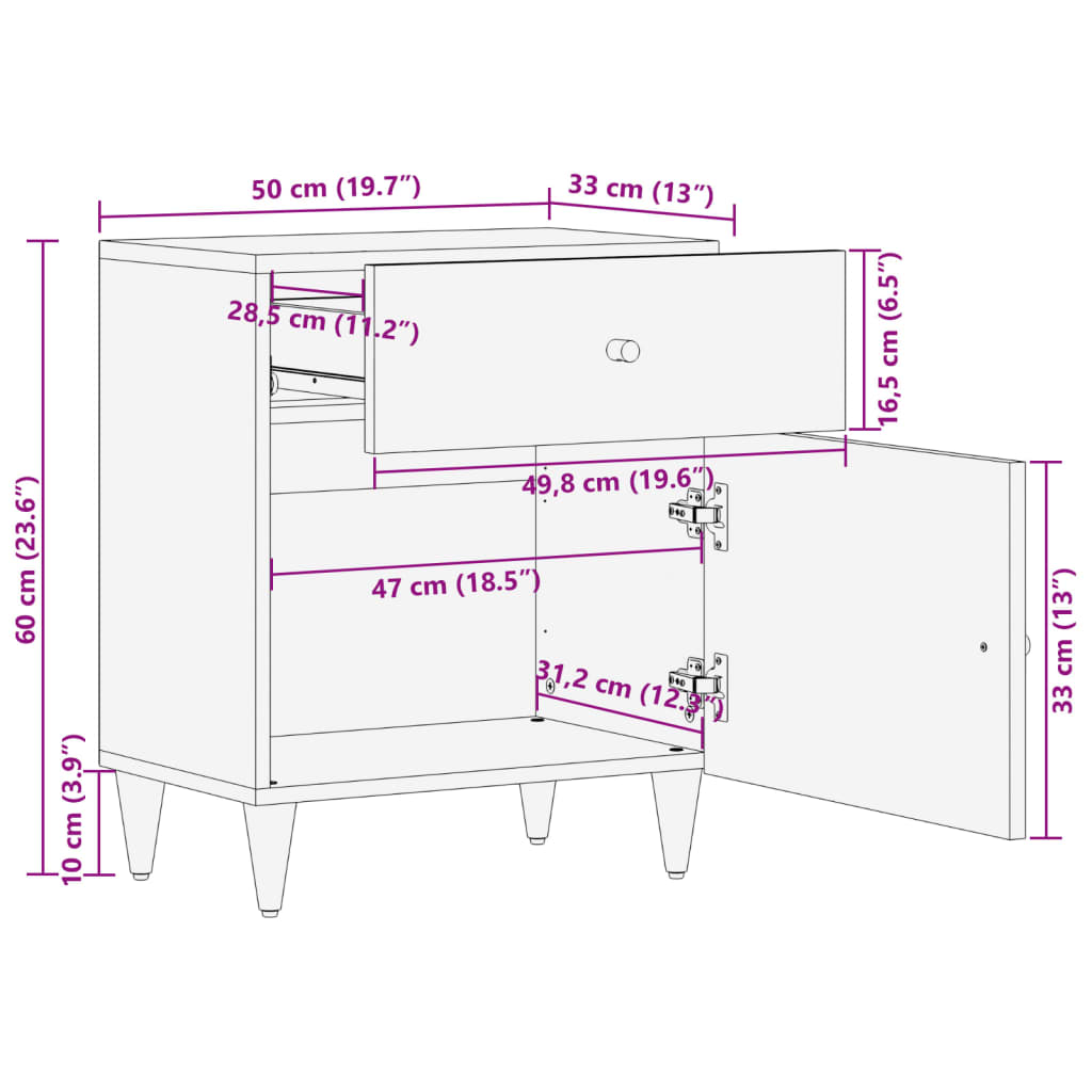 Dieser Nachttisch mit elegantem Design ist eine zeitlose Ergänzung deiner Inneneinrichtung. Massives Mangholz: Massives Mangoholz ist ein robustes, tropisches Hartholz, aus dem sich robuste Möbel herstellen lassen. Seine optisch ansprechende Holzmaserung macht jedes Möbelstück zu einem Unikat. Der Schrank ist aus massivem Mangoholz gefertigt und daher langlebig und stabil.Viel Stauraum: Der Nachttisch ist mit 1 Schublade und 1 Tür ausgestattet, um verschiedene Sachen ordentlich und griffbereit aufzubewahren.Stabile Oberplatte: Die Oberplatte des Beistellschranks bietet den perfekten Platz, um Dekoartikel, Bilderrahmen und Topfpflanzen zur Schau zu stellen.Starke Beine: Die Eisenbeine tragen zur Robustheit und Stabilität der Nachtkommode bei.Retro-Stil: Mit einem handgeschnitzten Blumenmuster versehen, bringt dieser Nachttisch den Luxus des Retro-Stils in dein Interieur und wird überall ein echter Hingucker sein. Gut zu wissen:Jedes Stück ist ein Unikat, das in Farbe und Maserung variiert. Die Lieferung erfolgt in zufälliger Reihenfolge, wodurch die Exklusivität und Individualität deines Produkts gewährleistet wird. Achtung:Um ein Umkippen zu vermeiden, sollte dieses Produkt mit der mitgelieferten Wandhalterung gesichert werden.