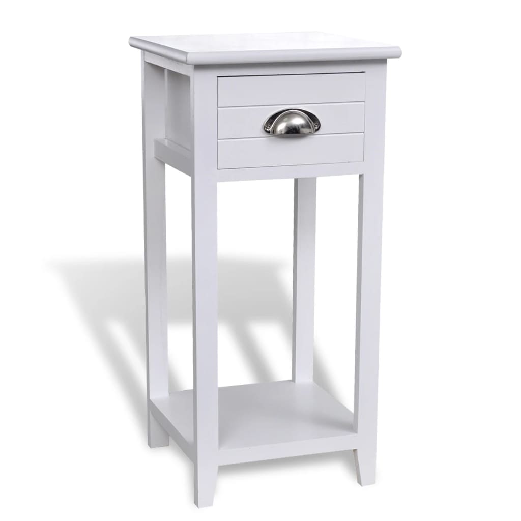 Dieser Nachttisch verfügt über eine Schublade und weist ein schlichtes und dennoch elegantes Design auf. Er lässt sich auch als Beistelltisch oder Telefontisch verwenden. Die Schublade und die Ablage bieten reichlich Platz, um verschiedene Kleinigkeiten organisiert und griffbereit aufzubewahren. Aus robustem Sperrholz und hochwertigem Paulownia-Holz gefertigt, lässt sich der Nachtisch einfach reinigen und ist auf Langlebigkeit ausgelegt.
