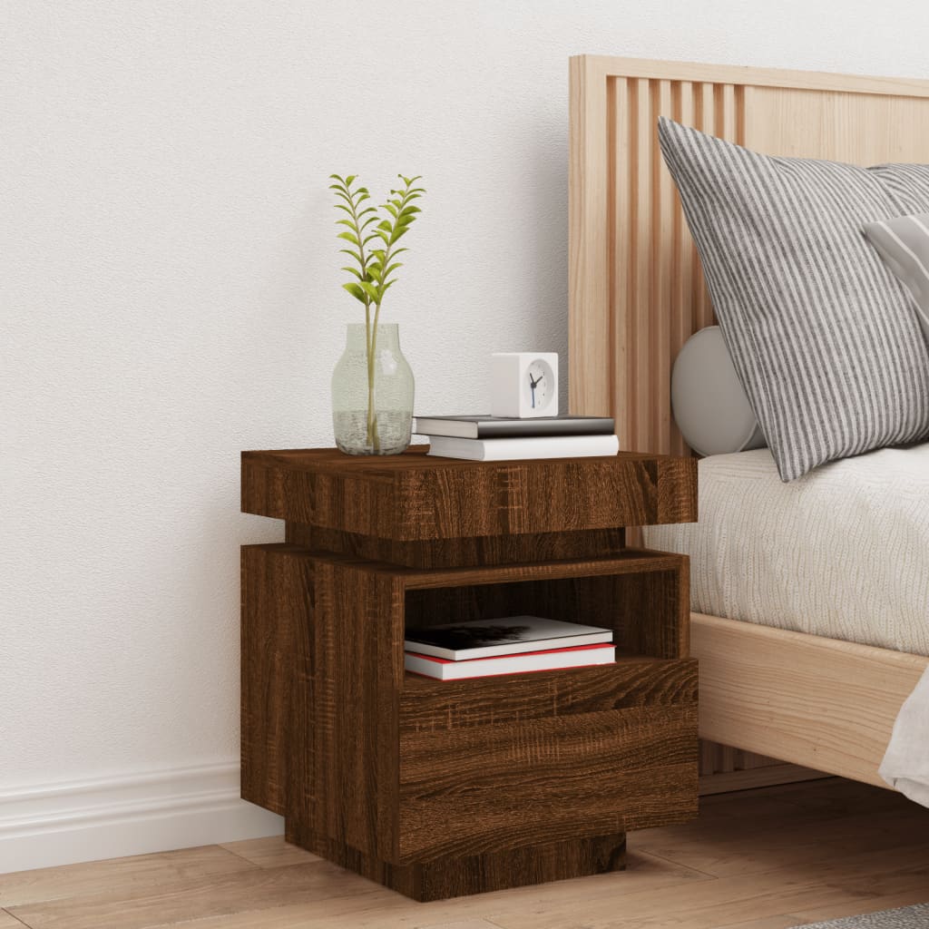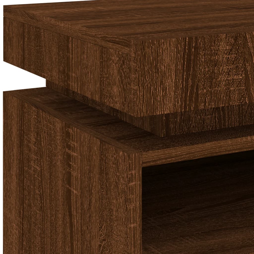 Mit seinem trendigen und dennoch praktischen Design wird dieser Nachttisch mit LED-Leuchten ganz bestimmt zum Hingucker in Ihrer Wohnung. Langlebiges Material: Holzwerkstoff ist ein Material von außergewöhnlicher Qualität mit glatter Oberfläche, das sich durch Festigkeit, Stabilität und Feuchtigkeitsbeständigkeit auszeichnet.RGB-LED-Leuchten: Dieser Nachttisch ist mit RGB-LED-Leuchten ausgestattet, die über verschiedene Menüs verfügen, um die Lichtfarbe zu wechseln und automatische Farbeinstellungen vorzunehmen.Reichlich Stauraum: Dieser Nachttisch bietet praktischen Stauraum, um deine Zeitschriften, Fernbedienungen und verschiedene Kleinigkeiten gut organisiert und in Reichweite aufzubewahren.Präsentation: Die robuste Oberplatte des Medienschranks bietet den idealen Platz, um Dekoartikel, Fotorahmen oder Topfpflanzen zur Schau zu stellen. Gut zu wissen:Das Produkt verfügt über einen USB-Anschluss, aber die zertifizierte 5-V-USB-Stromquelle ist nicht im Lieferumfang enthalten.