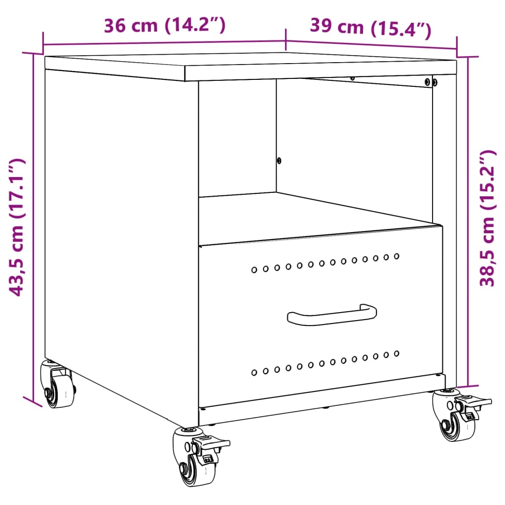 Mit seinem stilvollen Design ist dieser Nachttisch eine zeitlose Ergänzung zu deiner Inneneinrichtung. Stabiles Material: Das Gestell des Nachttisches besteht aus kaltgewalztem Stahl. Kaltgewalzter Stahl ist eine Art kohlenstoffarmer Stahl, der im „Kaltwalzverfahren“ hergestellt und bei nahezu normalen Raumtemperaturen verarbeitet wird. Kaltgewalzter Stahl besitzt eine glattere Oberfläche, eine höhere Festigkeit und lässt sich präziser verarbeiten.Reichlich Stauraum: Dieser Schrank bietet praktischen Stauraum, um deine Zeitschriften, Bücher, Fernbedienungen und andere kleine Gegenstände gut geordnet und in Reichweite aufzubewahren.Pflegeleicht: Der Tisch lässt sich mit einem feuchten Tuch leicht reinigen und erfordert wenig Pflege.Einfaches Umstellen: Dieser Beistelltisch verfügt über 4 Rollen und lässt sich daher flexibel und mühelos umher verschieben.Praktischer Griff: Der Nachtschrank ist mit einem Griff ausgestattet, der das Öffnen und Schließen des Schranks erleichtert und gleichzeitig für zusätzliche Schönheit sorgt.