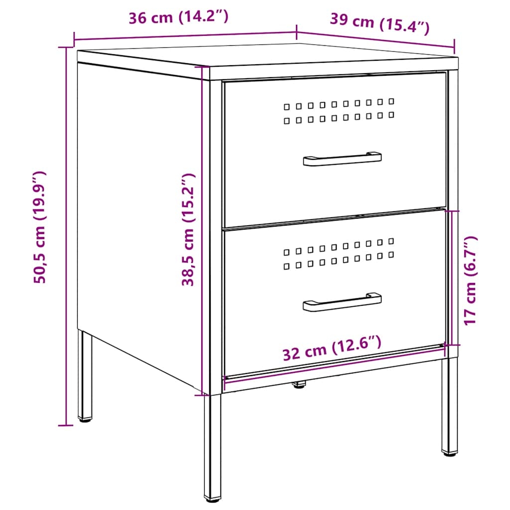 Mit seinem Design im Industrie-Stil ist dieser Nachttisch eine zeitlose Ergänzung zu deinem Interieur. Robustes und stabiles Gestell: Stahl ist stark, stabil und langlebig, was ihn zur idealen Wahl für eine Vielzahl von Anwendungen macht, von der Möbelherstellung bis hin zum Bauwesen.Viel Stauraum: Dieser Nachttisch mit 2 Schubladen bietet reichlich Platz, um verschiedene Alltagssachen gut organisiert und in Reichweite aufzubewahren.Einfache Reinigung: Der Nachttisch aus Stahl ist feuchtigkeitsbeständig und lässt sich mit einem feuchten Tuch leicht reinigen.Multifunktionales Design: Dieser Schubladenschrank ist ideal als Nachttisch neben dem Bett, als Beistelltisch neben der Couch im Wohnzimmer oder als Büroschrank im Arbeitszimmer.Präsentation: Du kannst auch deine Lieblingsfotos, Dekoartikel oder Blumen auf den Nachttisch stellen, um dein Leben zu verschönern. Achtung:Um ein Umkippen zu vermeiden, sollte dieses Produkt mit der mitgelieferten Wandhalterung gesichert werden.