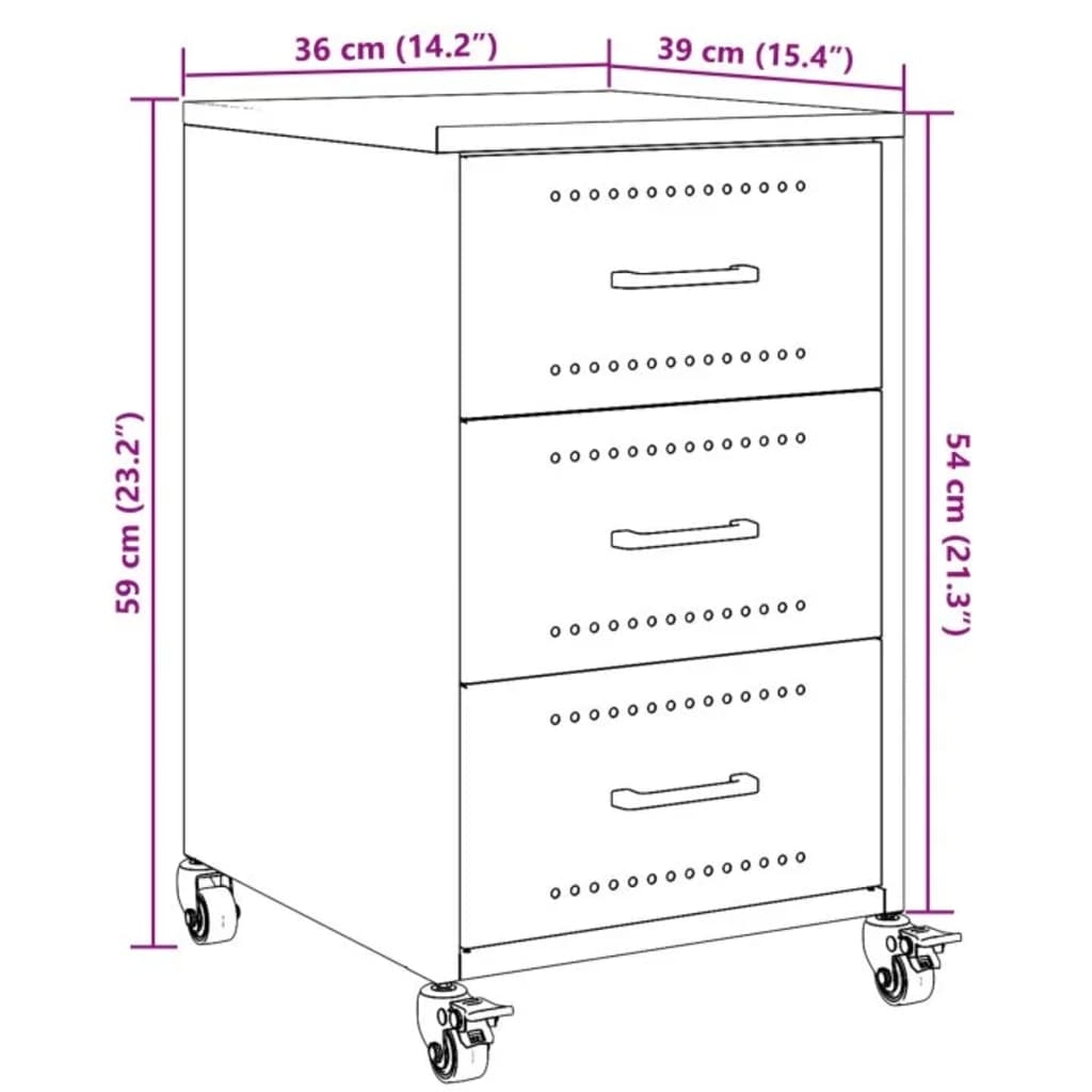 Mit seinem stilvollen Design ist dieser Nachttisch eine zeitlose Ergänzung zu deiner Inneneinrichtung. Stabiles Material: Das Gestell des Nachttisches besteht aus kaltgewalztem Stahl. Kaltgewalzter Stahl ist eine Art kohlenstoffarmer Stahl, der im „Kaltwalzverfahren“ hergestellt und bei nahezu normalen Raumtemperaturen verarbeitet wird. Kaltgewalzter Stahl besitzt eine glattere Oberfläche, eine höhere Festigkeit und lässt sich präziser verarbeiten.Reichlich Stauraum: Dieser Schrank bietet praktischen Stauraum, um deine Zeitschriften, Bücher, Fernbedienungen und andere kleine Gegenstände gut geordnet und in Reichweite aufzubewahren.Pflegeleicht: Der Tisch lässt sich mit einem feuchten Tuch leicht reinigen und erfordert wenig Pflege.Einfaches Umstellen: Dieser Beistelltisch verfügt über 4 Rollen und lässt sich daher flexibel und mühelos umher verschieben.Praktischer Griff: Der Nachtschrank ist mit 3 Griffen ausgestattet, die das Öffnen und Schließen des Schranks erleichtern und gleichzeitig zu seiner ansprechenden Optik beitragen.