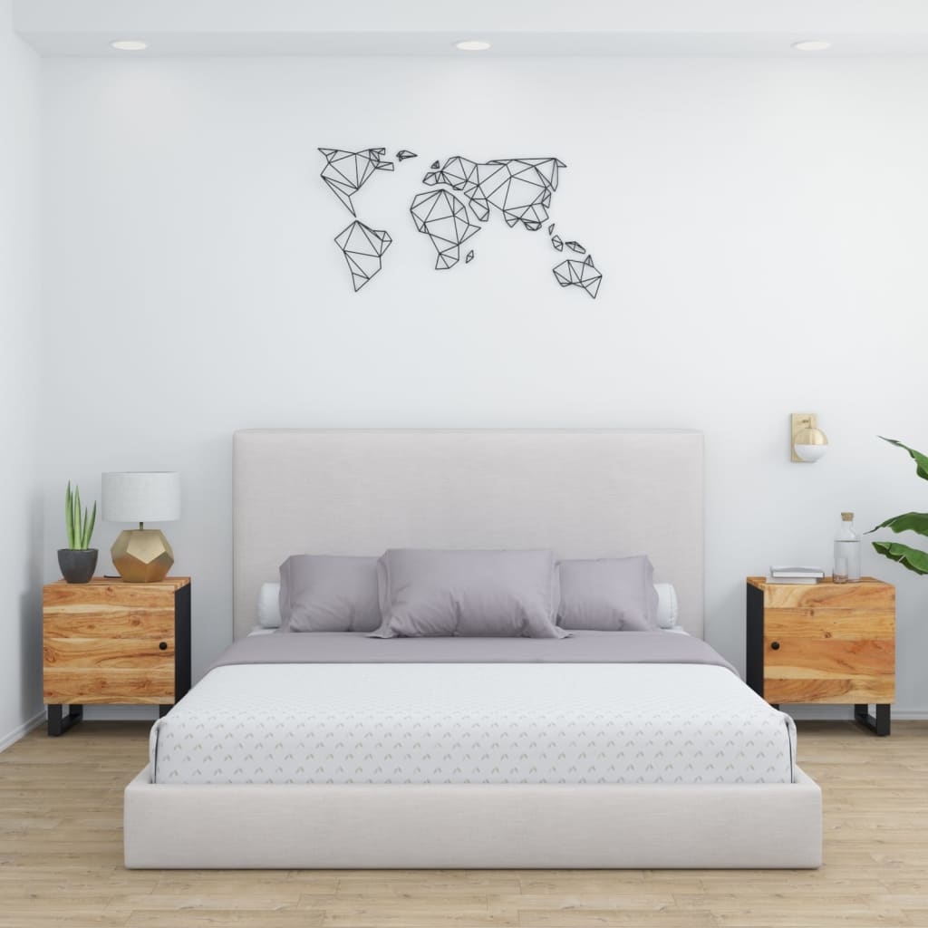 Bringe einen Hauch von industriellem Charme in dein Interieur mit diesen Nachttischen aus Holz! Variationen in Maserung und Farbe verleihen diesen Nachttischen einen einzigartigen Charakter. Massives Akazienholz: Akazien-Massivholz ist ein schönes Naturmaterial. Akazienholz ist ein tropisches Hartholz, das dicht, robust und langlebig ist.Viel Stauraum: Der Schrank bietet reichlich Stauraum, um deine Zeitschriften, Bücher, DVDs, Multimediageräte und andere Dekorationsgegenstände übersichtlich und griffbereit aufzubewahren.Robuste Oberplatte: Die stabile Oberplatte des Nachttisches eignet sich ideal, um Dekoartikel, Fotorahmen oder Topfpflanzen zur Schau zu stellen.Flexibler Türeinbau: Die Tür des Fachs kann je nach deinen persönlichen Gewohnheiten und Bequemlichkeit links oder rechts angebracht werden.Industrie-Stil: Die schwarzen Eisenbeine verleihen dem Beistellschrank einen industriellen Look und Stabilität. Hinweis:Die Farben und Maserungen variieren von Stück zu Stück und machen jedes Möbelstück zu einem Unikat. Die Lieferung erfolgt nach dem Zufallsprinzip und gewährleistet so die Exklusivität und Individualität deines Produkts.Jedes Produkt wird mit einer Montageanleitung in der Verpackung für eine einfache Montage geliefert.