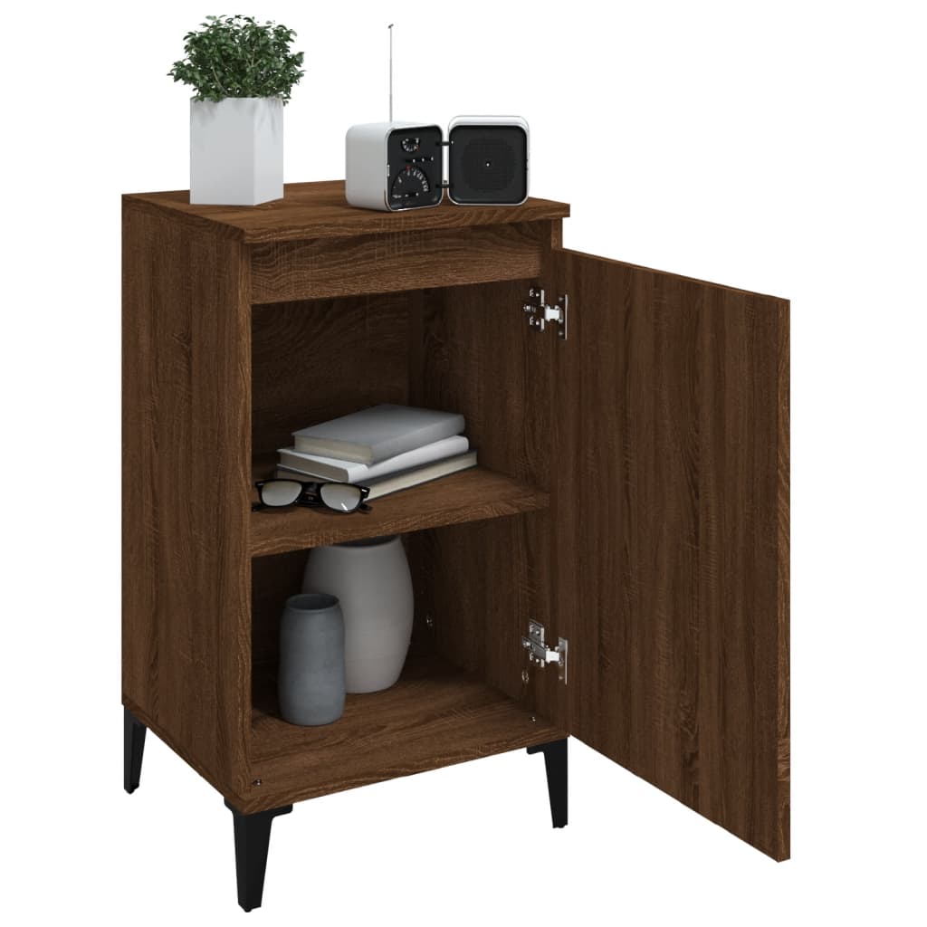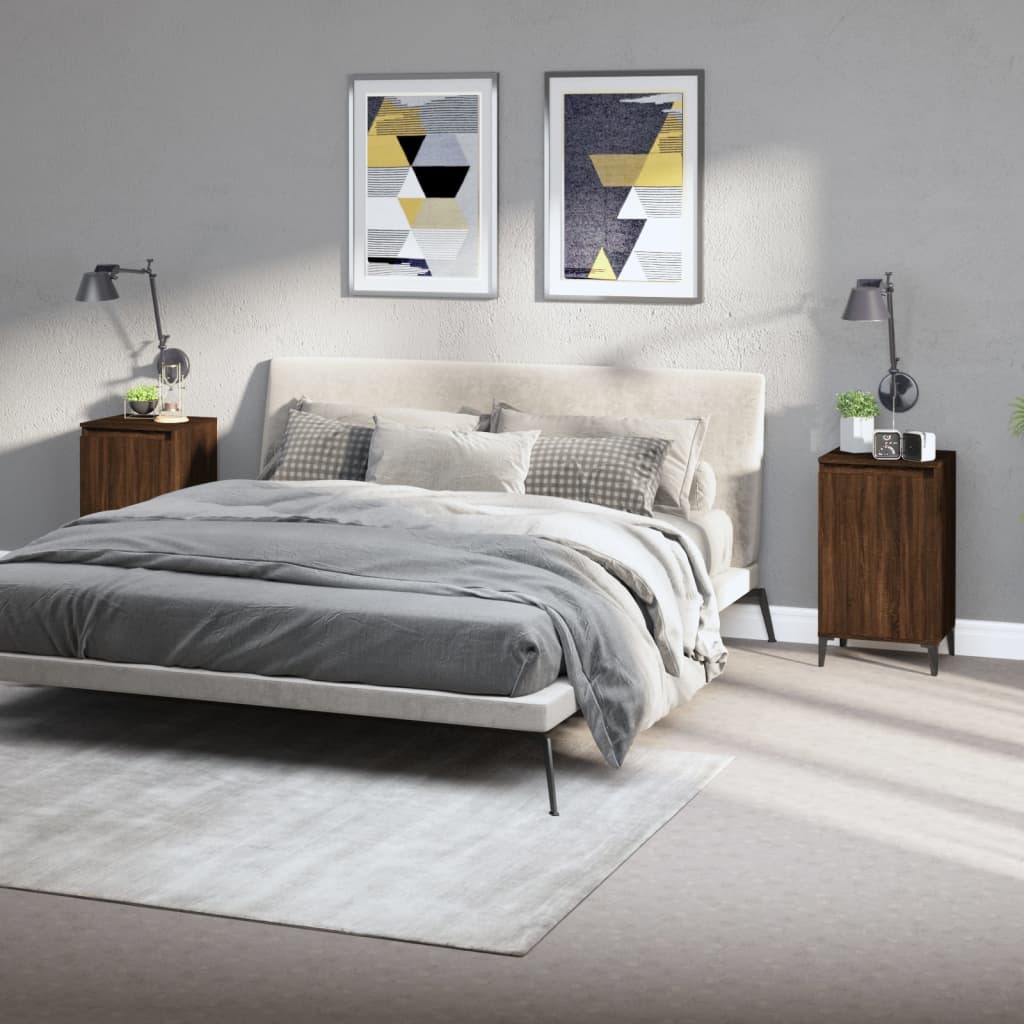 Mit ihrem eleganten und klassischen Design werten diese trendigen Nachttische deine Einrichtung mit Sicherheit auf. Langlebiges Material: Holzwerkstoff ist ein Material von außergewöhnlicher Qualität mit glatter Oberfläche, das sich durch Festigkeit, Stabilität und Feuchtigkeitsbeständigkeit auszeichnet.Reichlich Stauraum: Der Nachttisch verfügt über 2 Fächer mit einer Tür, die reichlich Platz bieten, um deine Zeitschriften, Bücher, Fernbedienungen und andere kleine Gegenstände gut organisiert und in Reichweite aufzubewahren.Metallbeine: Die Metallbeine verleihen Ihrem Interieur eine moderne und angenehme Note und sorgen gleichzeitig für Stabilität.Stabile Oberplatte: Die stabile Oberplatte des Beistelltisches bietet den idealen Platz für Dekoartikel, Bilderrahmen und Topfpflanzen.Einfache Reinigung: Der Beistellschrank lässt sich mit einem feuchten Tuch leicht reinigen. Achtung:Um ein Umkippen zu vermeiden, sollte dieses Produkt mit der mitgelieferten Wandhalterung gesichert werden. Gut zu wissen:Um die Montage so einfach wie möglich zu machen, wird jedes Produkt mit einer Anleitung geliefert.