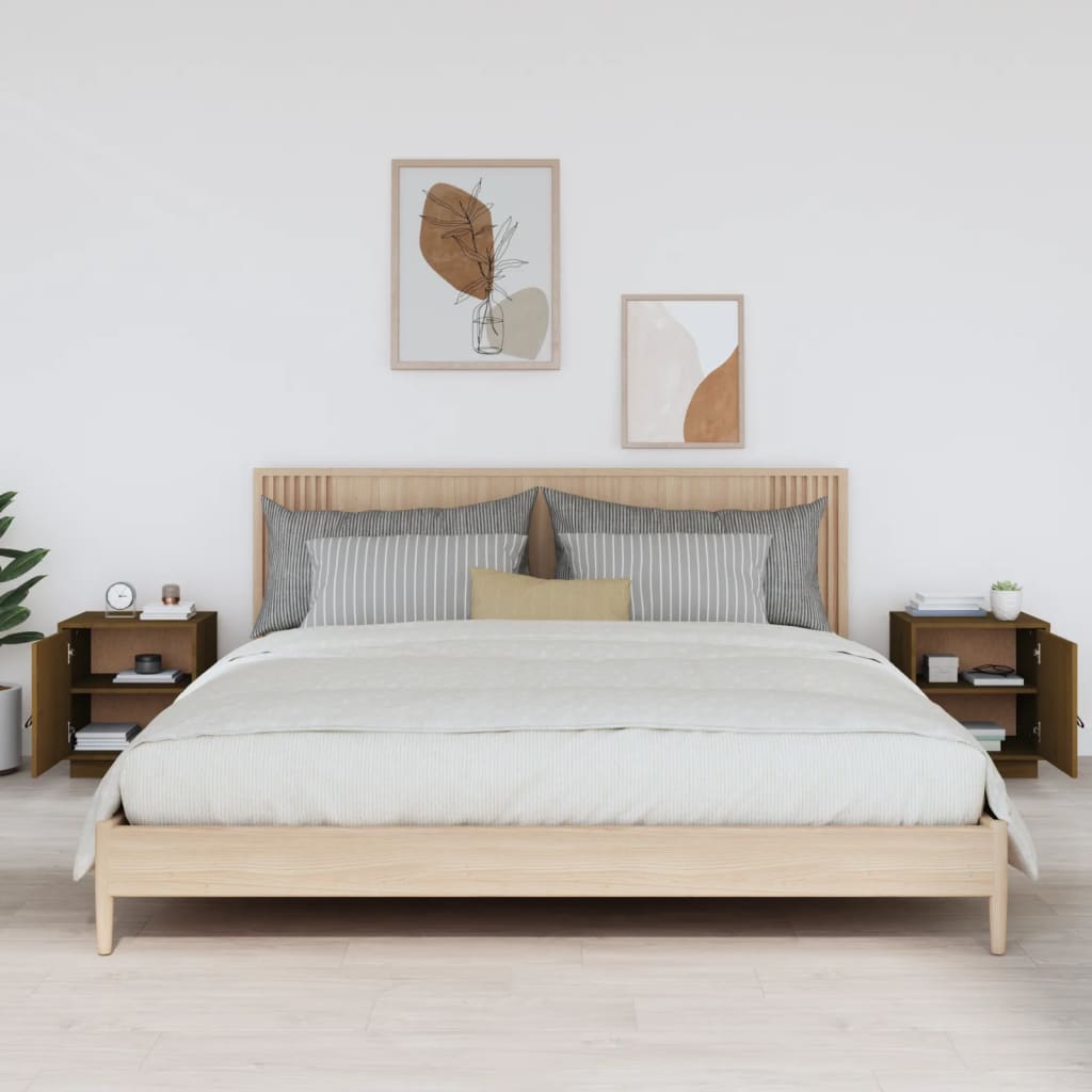 Mit ihrem eleganten Design sind diese Nachttische aus Holz eine zeitlose Ergänzung zu deiner Inneneinrichtung. Massives Kiefernholz: Massives Kiefernholz ist ein wunderschönes Naturmaterial. Kiefernholz weist eine gerade Maserung auf und die Aststellen verleihen dem Material seine charakteristische, rustikale Optik.Reichlich Stauraum: Mit 2 Fächern und 1 Tür mit Kunstledergriff versehen, bietet jeder Schrank reichlich Stauraum, um deine Zeitschriften, Bücher, DVDs, Multimedia-Geräte und andere Dekoartikel ordentlich und griffbereit aufzubewahren.Flexibler Türeinbau: Die Tür jedes Nachttisches kann je nach Belieben und Bequemlichkeit links oder rechts angebracht werden.Robuste Oberplatte: Die robuste Oberplatte eignet sich ideal, um Dekoartikel, Fotorahmen oder Topfpflanzen zur Schau zu stellen. Hinweis:Jedes Produkt wird mit einer Montageanleitung in der Verpackung für eine einfache Montage geliefert.