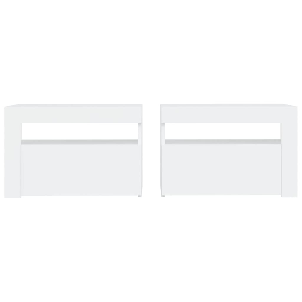 Mit ihrem trendigen und zugleich praktischen Design werden diese Nachttische echte Blickfänger in deinem Zimmer sein. Praktisches Material: Holzwerkstoff ist ein hochwertiges Material mit glatter Oberfläche, das sich durch Festigkeit, Stabilität und Feuchtigkeitsbeständigkeit auszeichnet. Aus Holzwerkstoff gefertigt, lassen sich diese Nachttische einfach reinigen.RGB LEDs: Diese Nachtschränke sind mit RGB-Beleuchtung ausgestattet, die über verschiedene Menüs verfügt, um die Lichtfarbe zu ändern und die Farbe automatisch unterschiedlich einzustellen. Die LED-Leuchten unterstreichen den modernen Look und verleihen ein trendiges Gefühl.Viel Stauraum: Die Nachttische bieten reichlich Stauraum, um verschiedene Sachen ordentlich aufzubewahren.Multifunktional: Die robusten Oberplatten eignen sich ideal, um Dekoartikel, Topfpflanzen oder Bilderrahmen zur Schau zu stellen. Die Nachttische können auch als Beistellschränke, Ablagetische usw. verwendet werden. Hinweis:Jedes Produkt wird mit einer Montageanleitung in der Verpackung für eine einfache Montage geliefert.Das Produkt verfügt über einen USB-Anschluss, aber die zertifizierte 5-V-USB-Stromquelle ist nicht im Lieferumfang enthalten.