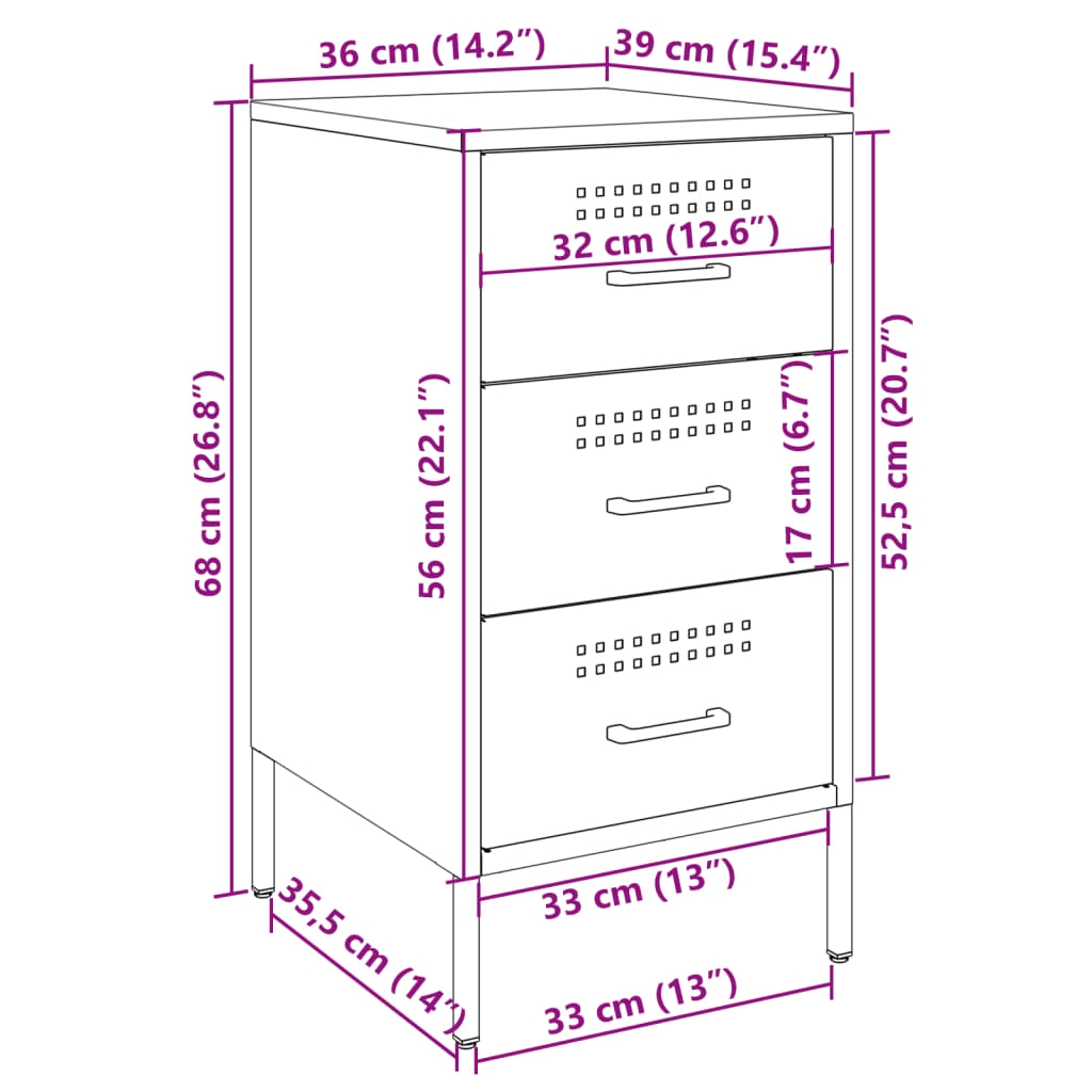 Diese robusten Nachttische im Industrie-Stil sind eine zeitlose Ergänzung zu deinem Schlafzimmer oder Wohnzimmer. Stabiles Material: Der Rahmen des Schranks besteht aus kaltgewalztem Stahl. Kaltgewalzter Stahl ist eine Art kohlenstoffarmer Stahl, der im „Kaltwalzverfahren“ hergestellt und bei nahezu normalen Raumtemperaturen verarbeitet wird. Kaltgewalzter Stahl besitzt eine glattere Oberfläche, eine höhere Festigkeit und lässt sich präziser verarbeiten.Reichlich Stauraum: Dieser Nachtschrank bietet reichlich Platz, um deine Zeitschriften, Bücher, DVDs, Fernbedienungen und andere kleine Gegenstände gut organisiert und griffbereit aufzubewahren.Verstellbare Schraubfüße: Dieser Beistellschrank ist mit vier Stellfüßen ausgestattet, um Bodenunebenheiten auszugleichen und Stabilität und Gleichgewicht zu gewährleisten.Einfache Reinigung: Der Schrank aus Metall ist mit einem feuchten Tuch leicht zu reinigen und erfordert wenig Pflege. Achtung:Um ein Umkippen zu vermeiden, sollte dieses Produkt mit der mitgelieferten Wandhalterung gesichert werden.