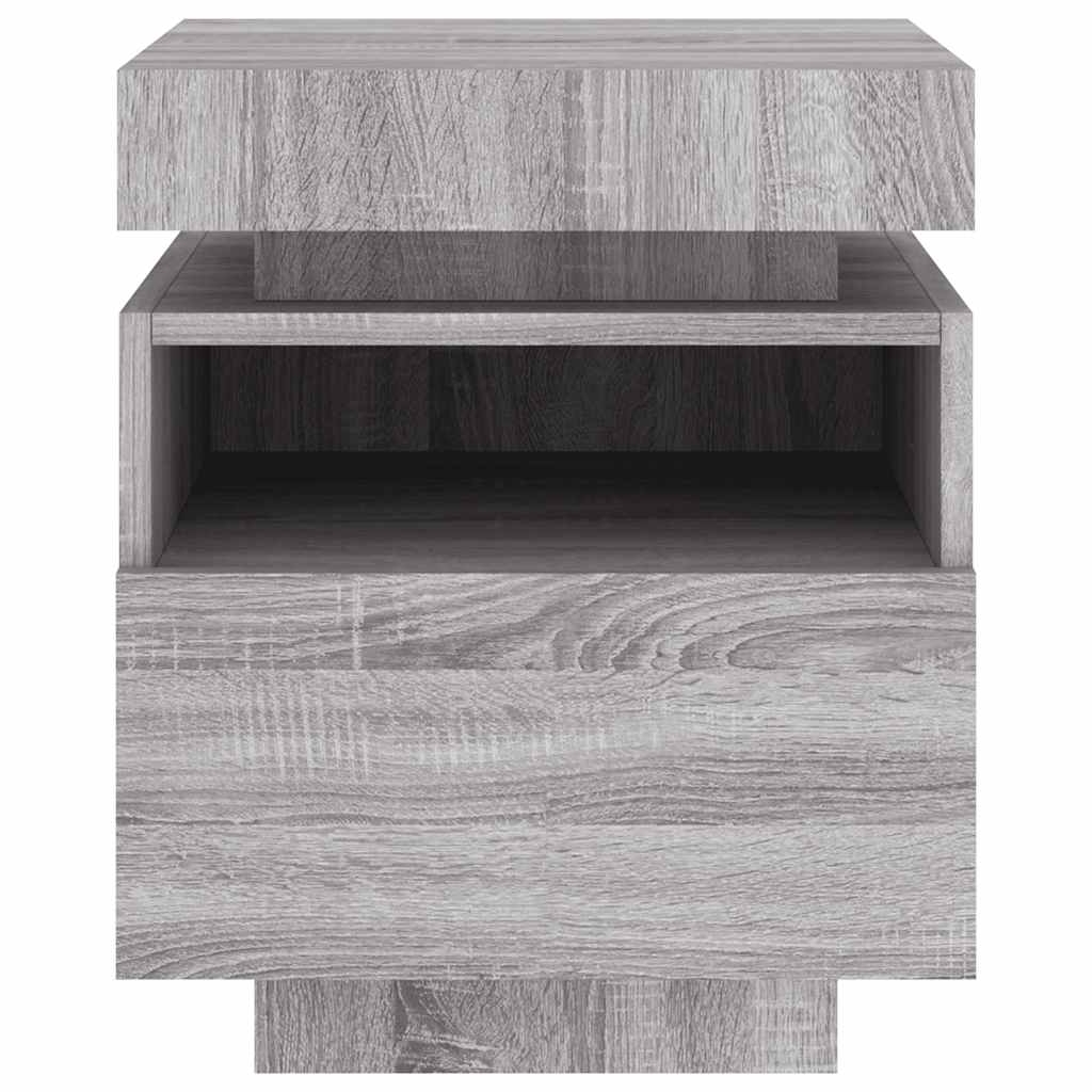 Mit ihrem trendigen und dennoch praktischen Design werden diese Nachttische mit LED-Beleuchtung definitiv zu einem Blickfang in Ihrem Zimmer. Langlebiges Material: Holzwerkstoff ist ein Material von außergewöhnlicher Qualität mit glatter Oberfläche, das sich durch Festigkeit, Stabilität und Feuchtigkeitsbeständigkeit auszeichnet.RGB-LED-Leuchten: Diese Nachttische sind mit RGB-LED-Leuchten ausgestattet, die über verschiedene Menüs verfügen, um die Lichtfarbe zu wechseln und automatische Farbeinstellungen vorzunehmen.Reichlich Stauraum: Diese Nachttische bieten praktischen Stauraum, um deine Zeitschriften, Fernbedienungen und verschiedene Kleinigkeiten gut organisiert und in Reichweite aufzubewahren.Präsentation: Die robusten Oberplatten bietet den idealen Platz, um Dekoartikel, Fotorahmen oder Topfpflanzen zur Schau zu stellen. Gut zu wissen:Das Produkt verfügt über einen USB-Anschluss, aber die zertifizierte 5-V-USB-Stromquelle ist nicht im Lieferumfang enthalten.