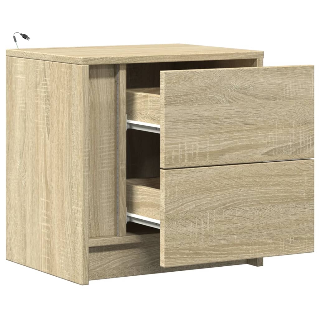Mit ihrem stilvollen Design fügen sich diese Nachttische harmonisch in dein Schlaf- oder Wohnzimmer ein und verleihen deinem Interieur einen zeitlosen Charme. Langlebiges Material: Holzwerkstoff ist ein Material außergewöhnlicher Qualität mit glatter Oberfläche. Er zeichnet sich durch Festigkeit, Stabilität und Feuchtigkeitsbeständigkeit aus.Viel Stauraum: Der Nachttisch ist mit einer Schublade versehen und bietet viel Platz, um verschiedene Alltagssachen gut organisiert und in Reichweite aufzubewahren.RGB-LED-Beleuchtung für ein angenehmes Ambiente: Dieser Beistelltisch verfügt über LED-Leuchten, die sich einfach einstellen lassen, um eine personalisierte Lichtshow zu erzeugen. So kannst du die Modi, Farben und Helligkeit anpassen, um das gewünschte Ambiente in deinem Interieur zu schaffen.Pflegeleicht: Dank seiner glatten Oberfläche lässt sich der Bettschrank mit einem feuchten Tuch leicht reinigen und erfordert wenig Pflege. Gut zu wissen:Das Produkt verfügt über einen USB-Anschluss, für den eine zertifizierte 5V-USB-Stromquelle erforderlich ist (nicht im Lieferumfang enthalten).