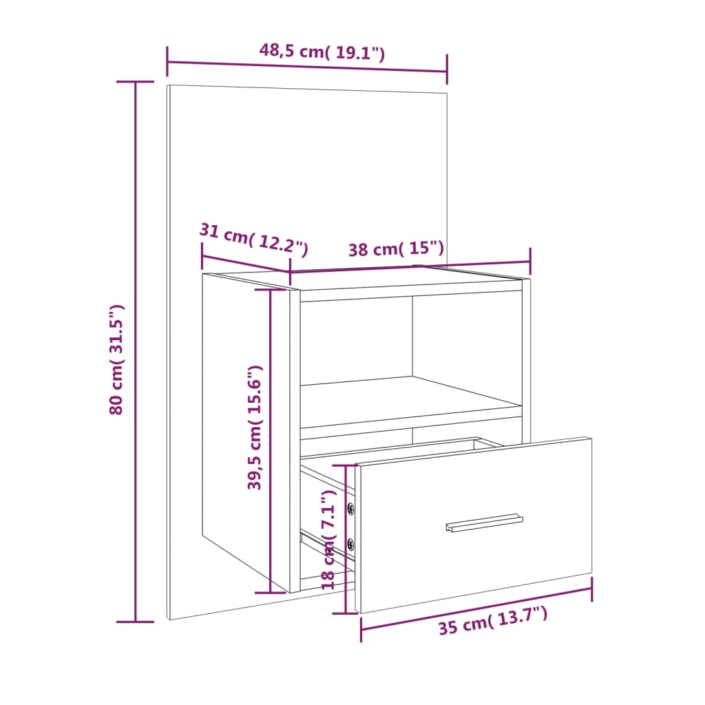 Dieser Wand-Nachttisch bietet die perfekte Lösung, um den Stauraum in deinem Wohnraum zu maximieren und die Bodenfläche sauber zu halten. Wandmontage: Dieser Nachttisch lässt sich an der Wand montieren, um zusätzlichen Stauraum zu schaffen. Auf diese Weise können Sie Ihre Bodenfläche maximieren und für Ordnung sorgen.Multifunktional: Der Wand-Nachttisch bietet den idealen Platz für Gegenstände wie Bücher, Sammlerstücke, Ornamente und mehr. Er verwandelt eine leere Wand in ein Designelement.Pflegeleichtes Material: Holzwerkstoff ist mit seiner glatten Oberfläche ein Material hoher Qualität, das sich durch Festigkeit, Stabilität und Feuchtigkeitsbeständigkeit auszeichnet. Aus Holzwerkstoff gefertigt, lässt sich der Wand-Nachttisch einfach reinigen. ACHTUNG:Schrauben und Dübel für die Wandbefestigung sind nicht enthalten. Suchen und verwenden Sie die für Ihre Wände geeigneten Schrauben und Dübel. Wenn Sie unsicher sind, suchen Sie professionelle Hilfe. Lesen und befolgen Sie jeden Schritt der Anleitung sorgfältig.