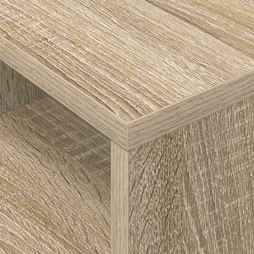 Dieser moderne Beistelltisch hat eine schicke Optik und ist perfekt für jeden zeitgenössischen Wohnraum. Er ist aus Holzwerkstoff gemacht und verbindet Stil und Funktion mit einem minimalistischen Design, das durch klare Linien und viel Stauraum geprägt ist. Ideal für alle, die Einfachheit und Nützlichkeit mögen, fügt sich dieser Beistelltisch wunderbar in zahlreiche Wohnstile ein und bietet gleichzeitig Schönheit und Praktikabilität. Haltbarkeit von Holzwerkstoffen Aus robustem Holzwerkstoff gefertigt, hält dieser Beistelltisch auch mal was aus. Die Oberfläche lässt sich leicht pflegen, sodass du Flüssigkeiten oder Flecken schnell mit einem feuchten Tuch wegwischen kannst, damit der Tisch immer gut aussieht. Viel Stauraum Mit seinen gut durchdachten Regalen und Fächern hilft dir dieser Tisch, Bücher, Magazine oder Deko ordentlich zu verstauen. Das clevere Design sorgt dafür, dass dein Wohnzimmer aufgeräumt bleibt und wichtige Dinge immer zur Hand sind. Stylisches modernes Design Mit klaren Linien und minimalistischem Style bringt dieser Tisch das moderne Flair in deinen Raum. Seine funktionale Bauweise passt perfekt zu zeitgenössischen Wohnbereichen und macht ihn zu einem flexiblen Möbelstück. Seine schlichte Eleganz steigert die visuelle Anziehungskraft in jedem Wohnzimmer. Perfekt für den Innenbereich Dieser Tisch ist speziell für drinnen gemacht und ist ideal für Wohnzimmer und passt zu verschiedenen Lifestyle. Sein schlankes Profil und die praktische Ästhetik machen ihn zu einer nützlichen Ergänzung für jedes Zuhause, bei dem kein Stil verloren geht. Einfache Pflege Halte die Tischoberfläche sauber, indem du sie einfach mit einem feuchten Tuch abwischst. So bleibt der Beistelltisch in einem Top-Zustand und seine Lebensdauer erhöht sich, ohne großen Aufwand.
