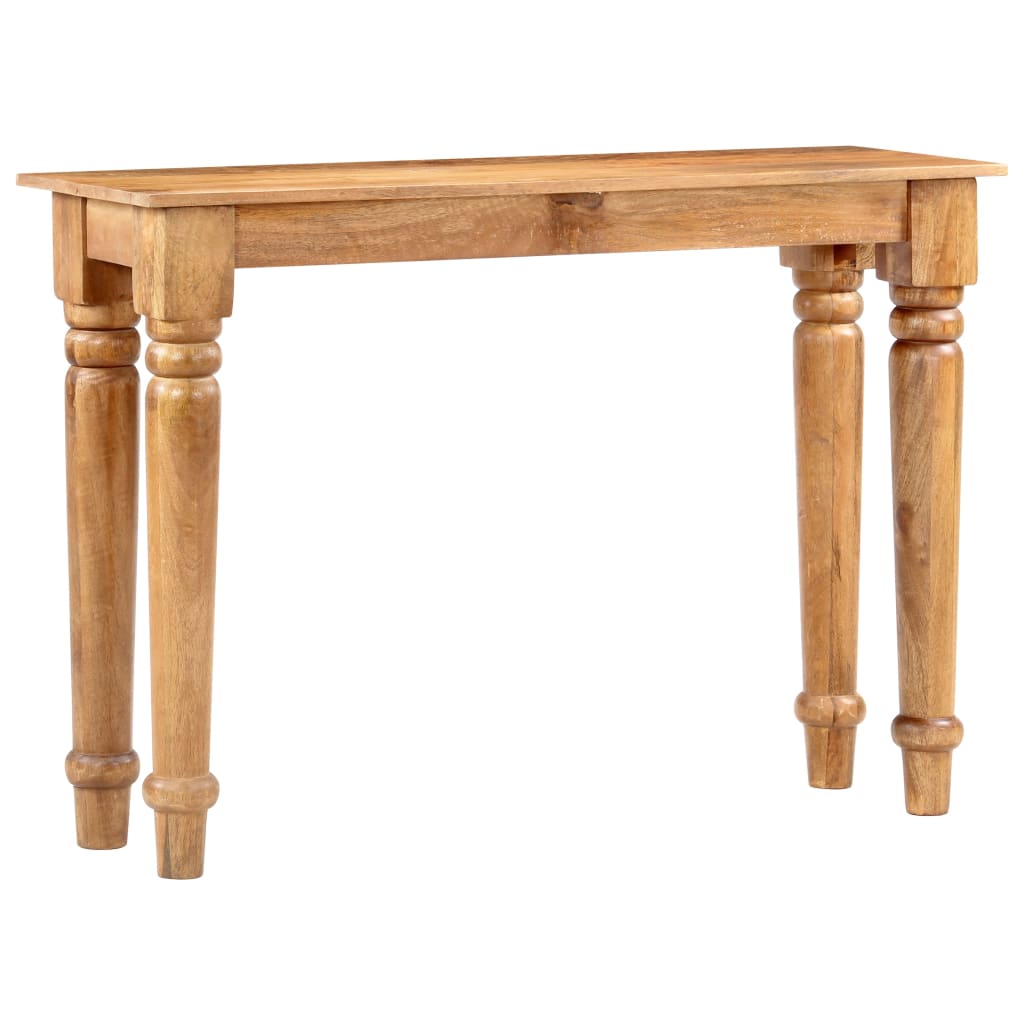 Dieser zeitlose Konsolentisch aus Holz mit klassischem Design ist eine unverwechselbare Ergänzung Ihrer Inneneinrichtung! Der Flurtisch ist aus massivem Mangoholz gefertigt, einem Hartholz mit dichter Maserung. Raues Mangoholz ist nicht nur robust genug, um Gewicht zu tragen, sondern hält auch der Abnutzung der Zeit stand. Jeder Arbeitsschritt wird mit größter Sorgfalt ausgeführt, sei es Polieren oder Lackieren. Die exquisite Handwerkskunst und die auffällige Holzmaserung machen jedes Möbelstück unverwechselbar und leicht anders als das nächste. Zusätzlich tragen die starken und glatten Beine zur stabilen Konstruktion bei. Der Beistelltisch ist einfach zu montieren. Wichtiger Hinweis: Die Farben können von Stück zu Stück variieren, wodurch jeder Tisch einzigartig ist; die Lieferung erfolgt nach dem Zufallsprinzip.