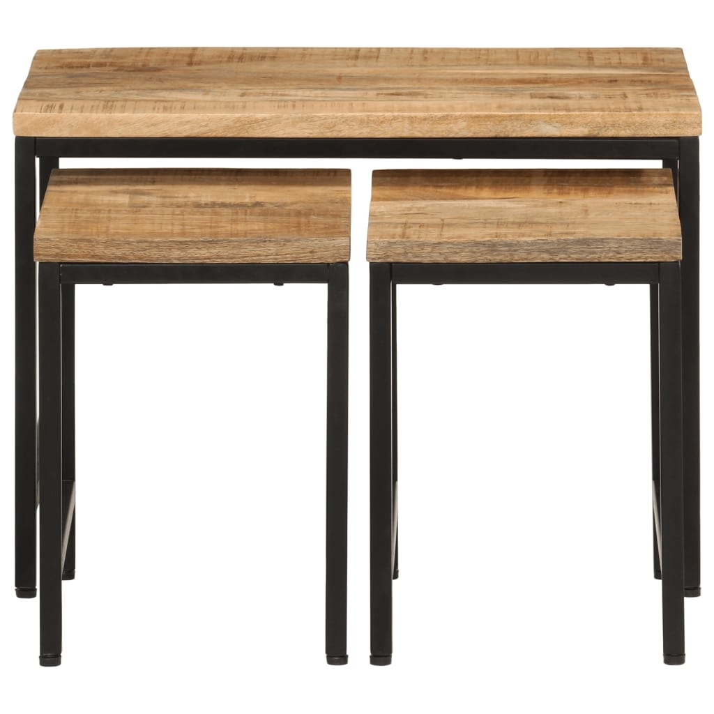 Diese 3 Satztische bieten eine perfekte Alternative für kleine Wohnungen oder überall dort, wo der Platz etwas begrenzt ist. Langlebiges Material: Massives Mangoholz ist ein starkes, tropisches Hartholz, aus dem robuste Möbelstücke hergestellt werden. Die optisch ansprechende Holzmaserung macht jedes Möbelstück zu einem Unikat. Satztische: Diese Satztische in verschiedenen Größen werden unterschiedlichen Anforderungen gerecht. Der kleinere Tisch kann unter dem größeren Couchtisch aufbewahrt werden, wenn du mehr Platz brauchst. Du kannst die Tische auch separat verwenden, um eine größere Tischfläche zu erhalten. Vielseitig einsetzbar: Diese Beistelltische lassen sich vielseitig einsetzen! Jeder von ihnen kann als Nachttisch im Schlafzimmer, als Beistelltisch oder als Couchtisch im Wohnzimmer und im Büro verwendet werden. Stabile Tischplatte: Dank der stabilen Tischplatten bieten die Satztische einen idealen Platz für Getränke oder andere Sachen, die du griffbereit haben möchtest. Gut zu wissen:Jedes Stück ist ein Unikat, das in Farbe und Maserung variiert. Die Lieferung erfolgt in zufälliger Reihenfolge, wodurch die Exklusivität und Individualität deines Produkts gewährleistet wird.