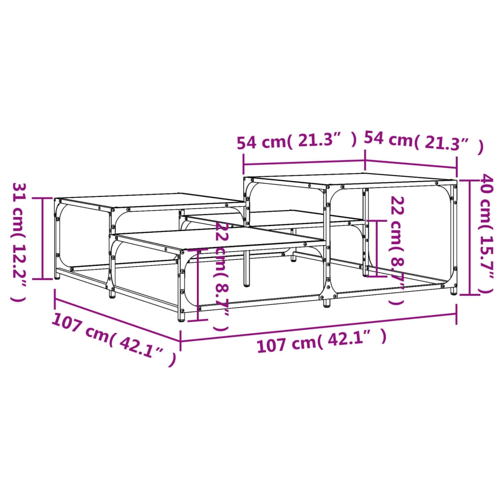 Dekoriere dein Wohnzimmer mit diesem stilvollen Couchtisch, das sich leicht mit Möbeln in jedem Stil kombinieren lässt. Langlebiges Material: Holzwerkstoff ist ein Material von außergewöhnlicher Qualität mit glatter Oberfläche, das sich durch Festigkeit, Stabilität und Feuchtigkeitsbeständigkeit auszeichnet. Aus Holzwerkstoff gefertigt, lässt sich der Sofatisch leicht reinigen.Präsentation: Dieser quadratische Couchtisch besteht aus mehreren Platten in unterschiedlichen Höhen, wobei jede Platte den idealen Platz für einen Dekoartikel bietet.Stabile Tischplatte: Dank der stabilen Tischplatten bietet der Couchtisch einen idealen Platz für Getränke oder andere Sachen, die du griffbereit haben möchtest.Metallrahmen: Der Metallrahmen verleiht deiner Einrichtung einen industriellen Stil und sorgt gleichzeitig für Haltbarkeit und Stabilität.Verstellbare Beine: Die verstellbaren Beine mit Kunststoffkappen verleihen dem Couchtisch zusätzliche Stabilität, selbst auf unebenem Untergrund.