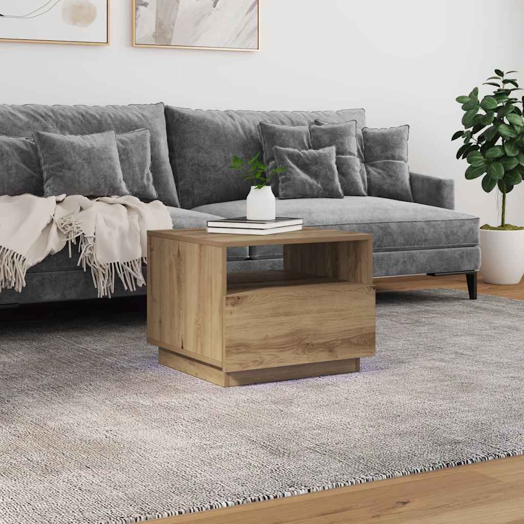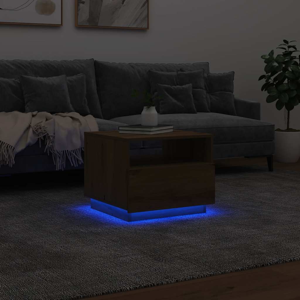 Dekoriere dein Wohnzimmer mit diesem modernen Couchtisch mit LED-Leuchten, der sich leicht mit Möbeln in jedem Stil kombinieren lässt. Langlebiges Material: Der Holzwerkstoff ist von außergewöhnlicher Qualität mit glatter Oberfläche und zeichnet sich außerdem durch Festigkeit, Stabilität und Widerstandsfähigkeit gegen Feuchtigkeit aus.Stabile Tischplatte: Die robuste Tischplatte dieses Couchtischs bietet einen sicheren Platz für Getränke, Vasen, Obstschalen oder Ornamente.RGB-LED-Leuchten: Der Couchtisch ist mit lebendigen RGB-LED-Leuchten ausgestattet. Mit verschiedenen anpassbaren Menüs kannst du die Farbe der Lichter mühelos wechseln und sie sogar auf automatische Anpassung einstellen. Die LED-Beleuchtung unterstreicht den modernen Look des Couchtisches und trägt zu seinem trendigen Design bei.Vielseitiges Design: Dieser Sofatisch wird unterschiedlichen Ansprüchen gerecht, denn er lässt sich auch als Beistelltisch, Teetisch oder Telefontisch verwenden. Gut zu wissen:Das Produkt verfügt über einen USB-Anschluss, für den eine zertifizierte 5V-USB-Stromquelle erforderlich ist (nicht im Lieferumfang enthalten).