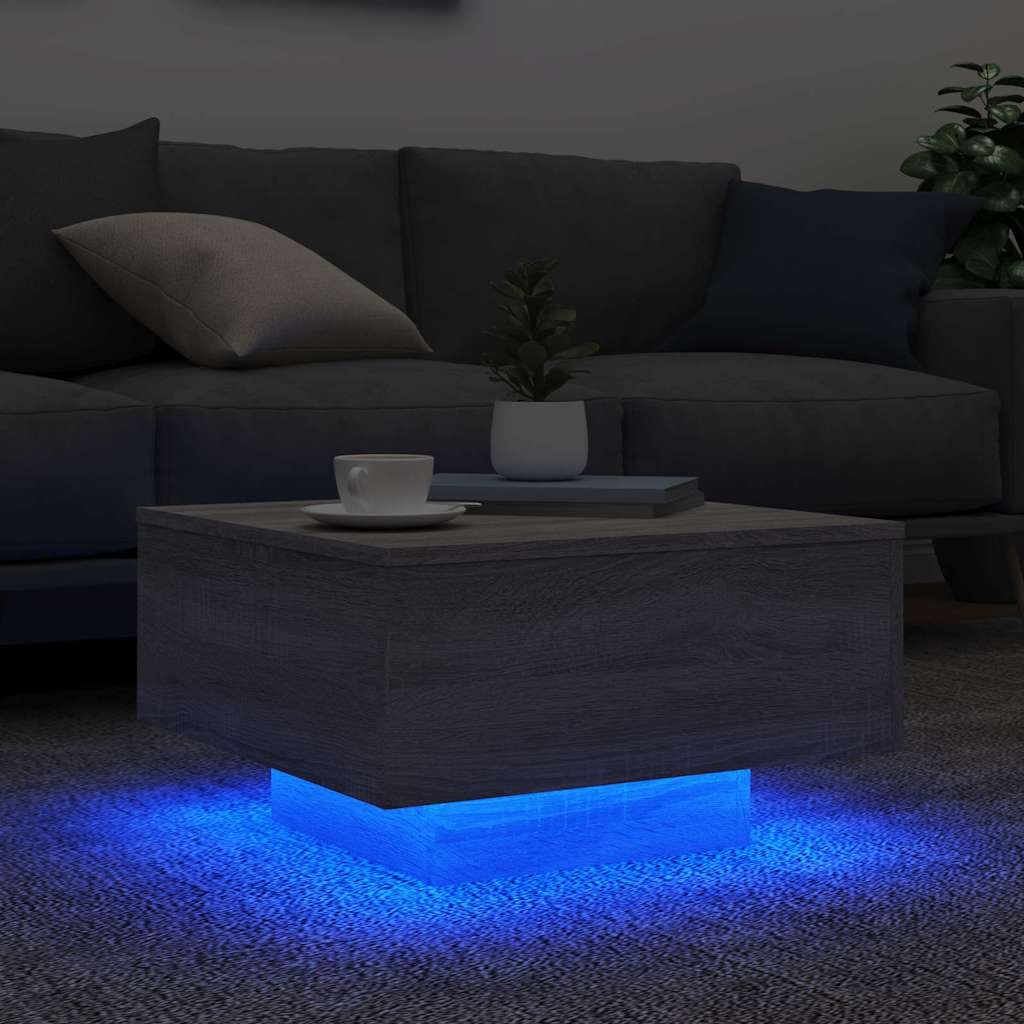 Dekoriere dein Wohnzimmer mit diesem modernen Couchtisch mit LED-Leuchten, der sich leicht mit Möbeln in jedem Stil kombinieren lässt. Langlebiges Material: Holzwerkstoff ist ein Material von außergewöhnlicher Qualität mit glatter Oberfläche, das sich durch Festigkeit, Stabilität und Feuchtigkeitsbeständigkeit auszeichnet.Stabile Tischplatte: Die robuste Tischplatte dieses Couchtischs bietet einen sicheren Platz für Getränke, Vasen, Obstschalen oder Ornamente.Vielseitiges Design: Dieser Sofatisch wird unterschiedlichen Ansprüchen gerecht, denn er lässt sich auch als Beistelltisch, Teetisch oder Telefontisch verwenden.Einstellbare RGB-LED-Leuchten: Der Couchtisch ist mit lebendigen RGB-LED-Leuchten ausgestattet. Mit verschiedenen anpassbaren Menüs kannst du die Farbe der Lichter mühelos wechseln und sie sogar auf automatische Anpassung einstellen. Die LED-Beleuchtung unterstreicht den modernen Look des Couchtisches und trägt zu seinem trendigen Design bei. Gut zu wissen:Das Produkt verfügt über einen USB-Anschluss, für den eine zertifizierte 5V-USB-Stromquelle erforderlich ist (nicht im Lieferumfang enthalten).