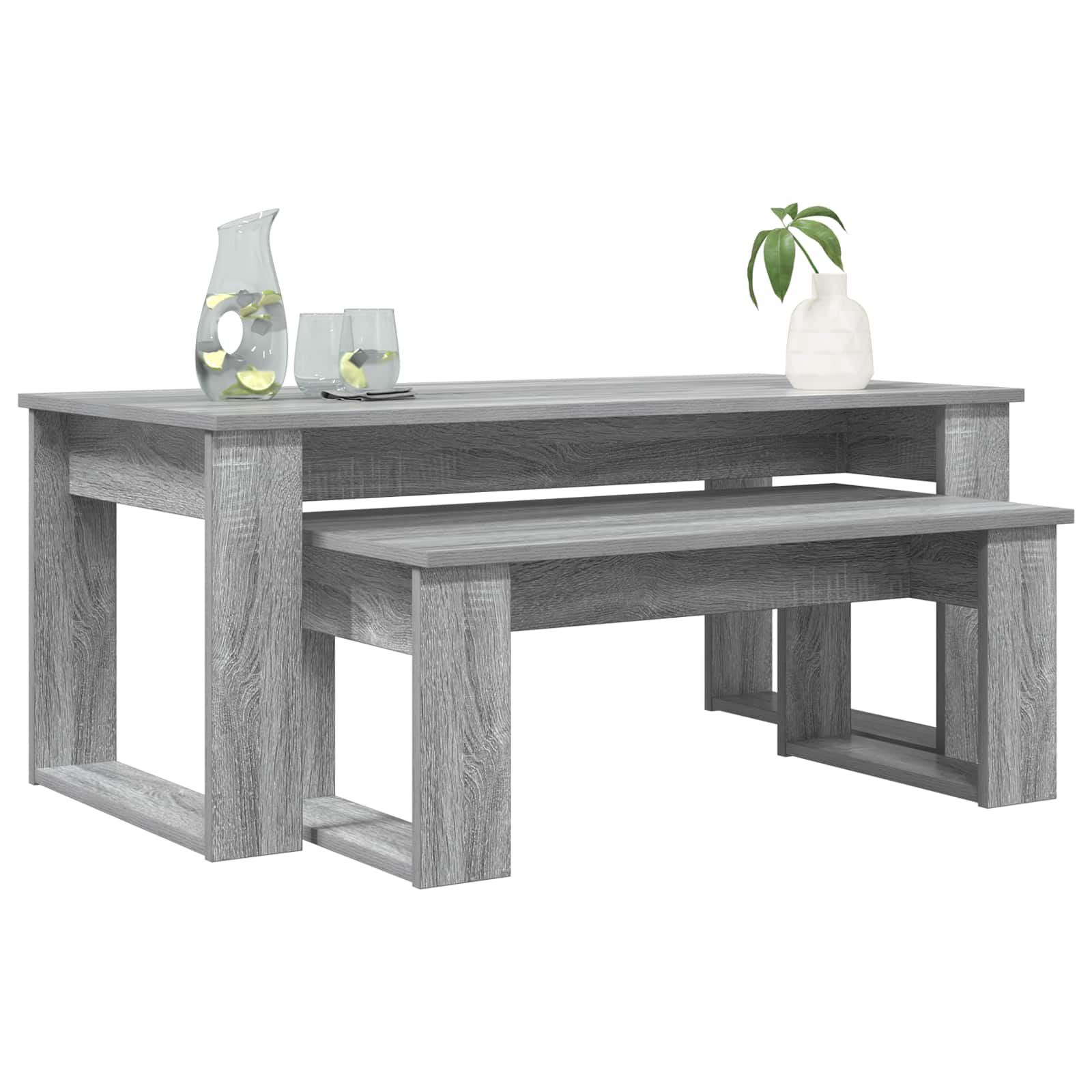 Das moderne Couchtisch-Set bringt einen Hauch von Eleganz und Funktionalität in dein Wohnzimmer. Es ist toll für Dekoration, Getränke und Lesematerial. Die rechteckige Form hat eine ausgewogene Anziehungskraft und passt perfekt zu vielen Möbeln und Styles. Material aus Holzwerkstoff: Dieses Couchtisch-Set ist aus robustem Holzwerkstoff gefertigt und für Langlebigkeit sowie einen modernen Look konzipiert. Das Material wurde wegen seiner Festigkeit gewählt und passt in jedes Zuhause – ganz unkompliziert! Bequeme Montage: Dank der einfachen Anleitungen ist der Aufbau dieses Tischsets ein Kinderspiel. Alle Teile sind dabei, und man braucht nur zwei Personen und einen Schraubendreher, damit alles schnell und einfach geht. Vielseitiger Stil: Das coole Design passt super in jedes Wohnzimmer. Es bietet eine praktische Oberfläche für Alltagsgegenstände und sieht dabei auch noch schick aus – ein echter Hingucker! Nur für drinnen: Dieses Tischset ist nur für den Innenbereich gedacht und perfekt für Wohnzimmer oder Lounges. Es bringt Stil und Funktionalität in deine Räume, ohne die Materialqualität zu beeinträchtigen. Pflegehinweise: Um das schöne Aussehen des Tisches zu erhalten, sollten scharfe Chemikalien und raue Materialien vermieden werden. Einfaches Abstauben und leichtes Wischen hält die Oberfläche frisch und sorgt dafür, dass der Tisch lange schön bleibt.