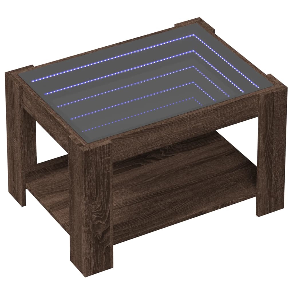 Dieser einzigartige Couchtisch ist mit einem LED-Infinity-Spiegel versehen und eignet sich für die unterschiedlichsten Umgebungen. Er darf aus deinem Zuhause nicht fehlen. Starkes und langlebiges Material: Holzwerkstoff ist ein langlebiges und robustes Material mit einer glatten Oberfläche, das gegen Feuchtigkeit, Verformung und Rissbildung beständig ist, wodurch es eine zuverlässigen Wahl für die Herstellung von Möbeln ist.RGB-LED-Beleuchtung für ein angenehmes Ambiente: Dieser Couchtisch ist mit LED-Leuchten ausgestattet, die sich leicht einstellen lassen, um eine personalisierte Lichtshow zu erstellen, die das Ambiente deines Raums aufwertet.Robuste Tischplatte: Die robuste Tischplatte bietet den perfekten Platz für Getränke, Snacks und einige Dekoartikel.Vielseitig einsetzbar: Dieser Couchtisch lässt sich vielseitig einsetzen. Er kann je nach Bedarf als Beistelltisch, Ablagetisch oder Kaffeetisch in deinem Wohn- oder Schlafzimmer dienen. Gut zu wissen:Das Produkt verfügt über einen USB-Anschluss, für den eine zertifizierte 5V-USB-Stromquelle erforderlich ist (nicht im Lieferumfang enthalten).