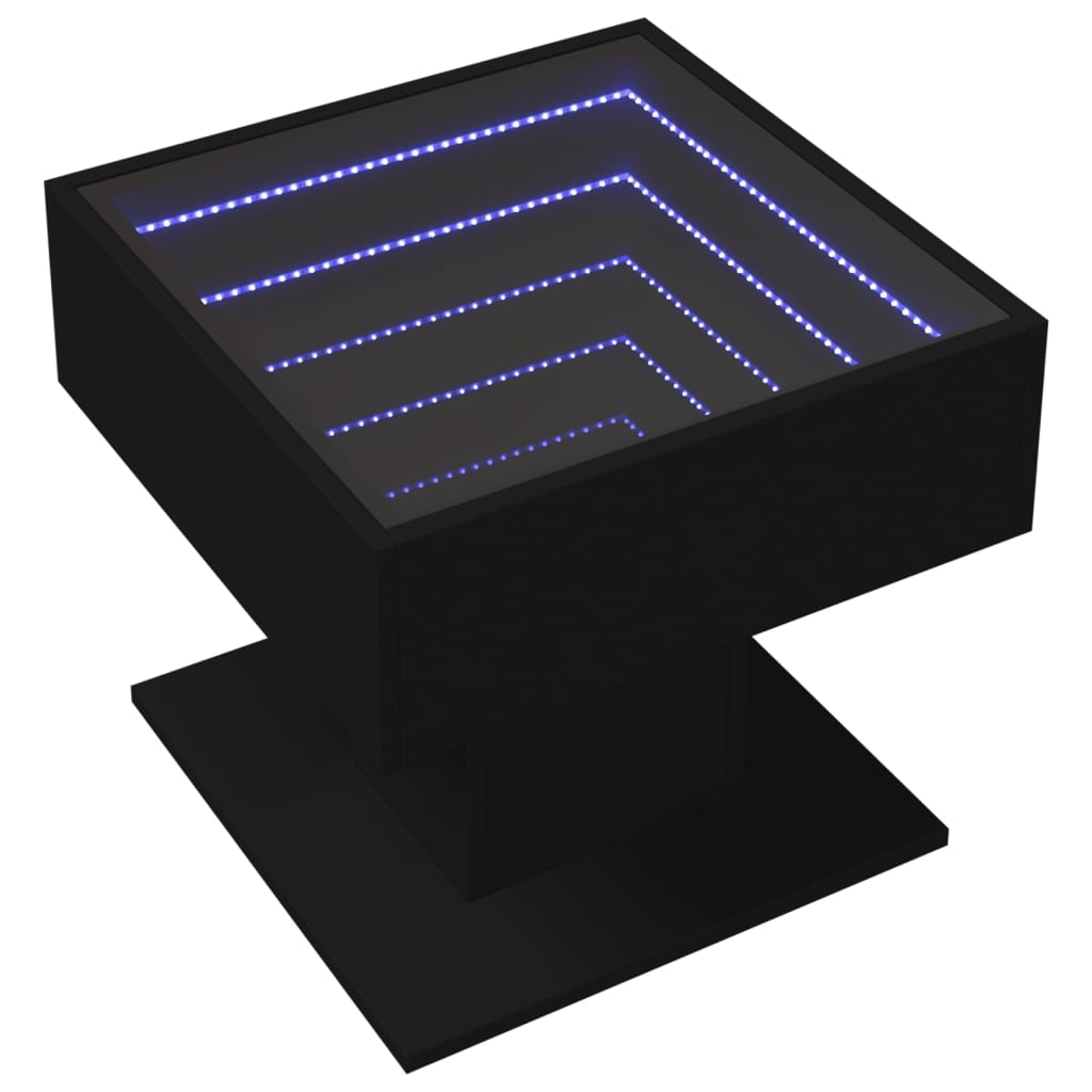 Dieser einzigartige Couchtisch ist mit einem LED-Infinity-Spiegel versehen und eignet sich für die unterschiedlichsten Umgebungen. Er darf aus deinem Zuhause nicht fehlen. Starkes und langlebiges Material: Holzwerkstoff ist ein langlebiges und robustes Material mit einer glatten Oberfläche, das gegen Feuchtigkeit, Verformung und Rissbildung beständig ist, wodurch es eine zuverlässigen Wahl für die Herstellung von Möbeln ist.RGB-LED-Beleuchtung für ein angenehmes Ambiente: Dieser Couchtisch ist mit LED-Leuchten ausgestattet, die sich leicht einstellen lassen, um eine personalisierte Lichtshow zu erstellen, die das Ambiente deines Raums aufwertet.Robuste Tischplatte: Die robuste Tischplatte bietet den perfekten Platz für Getränke, Snacks und einige Dekoartikel.Vielseitig einsetzbar: Dieser Couchtisch lässt sich vielseitig einsetzen. Er kann je nach Bedarf als Beistelltisch, Ablagetisch oder Kaffeetisch in deinem Wohn- oder Schlafzimmer dienen. Gut zu wissen:Das Produkt verfügt über einen USB-Anschluss, für den eine zertifizierte 5V-USB-Stromquelle erforderlich ist (nicht im Lieferumfang enthalten).
