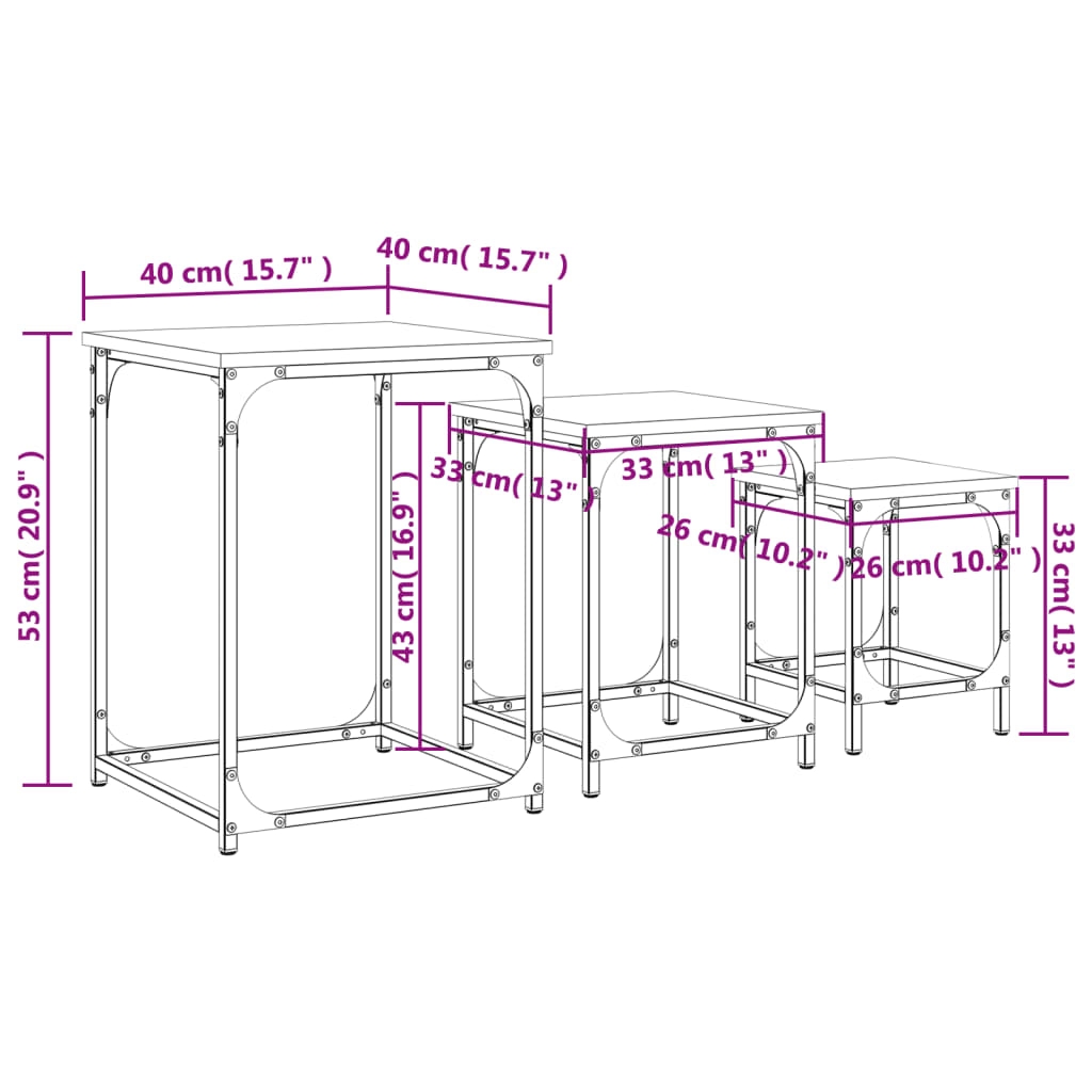Diese drei verschachtelten Couchtische sind eine clevere Lösung für kleine Wohnräume oder jeden Bereich mit wenig Platz. Mit seinem industriellen Design verleiht dieses Couchtisch-Set deinem Wohnzimmer, Schlafzimmer oder Büro einen schicken Touch. Langlebiges Material: Der Holzwerkstoff ist von außergewöhnlicher Qualität mit glatter Oberfläche und zeichnet sich außerdem durch Festigkeit, Stabilität und Widerstandsfähigkeit gegen Feuchtigkeit aus. Diese Nisttische aus Holzwerkstoff sind leicht zu reinigen.Nesting-Design: Das Nest aus Tischen hat verschiedene Größen, um deinen unterschiedlichen Bedürfnissen gerecht zu werden. Der kleinere Tisch kann in den größeren Couchtisch geschoben werden, wenn du mehr Platz brauchst.Stabile Platte: Die robuste Tischplatte des Nesting-Ständers ist ideal, um deine Getränke oder andere Dinge, die du brauchst, griffbereit zu haben.Vielseitige Funktion: Die Nesting-Beistelltische sind vielseitig! Jeder von ihnen kann als Nachttisch im Schlafzimmer, als Beistelltisch oder als Couchtisch im Wohnzimmer und im Büro verwendet werden.Metallrahmen: Der Metallrahmen verleiht deiner Einrichtung einen industriellen Stil und sorgt gleichzeitig für Haltbarkeit und Stabilität. Achtung:Um ein Umkippen zu vermeiden, sollte dieses Produkt mit der mitgelieferten Wandhalterung gesichert werden.