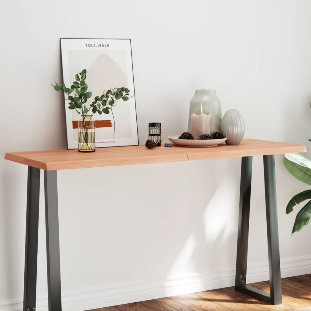 Verleihe deinem Tisch neues Leben mit dieser Holztischplatte. Sie ist eine hervorragende Lösung für die Auffrischung deines Tisches zu Hause oder in einem gewerblichen Umfeld. Robuste Konstruktion: Die Tischplatte besteht aus massivem Eichenholz, einem wunderschönen Naturmaterial. Eichenholz weist eine mittelbraune Farbe und eine dichte Maserung auf, was zu seiner einzigartigen Optik beiträgt. Dank der Scharniere lässt sich die Tischplatte zusammenklappen und platzsparend aufbewahren.Vielseitig einsetzbar: Die Ersatztischplatte kann je nach Bedarf mit verschiedenen Untergestellen kombiniert werden.Behandelte Oberfläche: Die Ersatztischplatte wurde lackiert, sodass sie sofort einsatzbereit ist, da eine zusätzliche Oberflächenbehandlung nicht erforderlich ist.Handgefertigt mit Naturkante: Das DIY-Brett wird in sorgfältiger Handarbeit hergestellt und weist eine lebendige Kante auf, die seinen natürlichen Charme unterstreicht. Dabei sind Aststellen, Risse, leicht geschwungene Formen und verschiedene Farbtöne Teil des Eichenholzes und machen jedes Stück zu einem Unikat. Die Lieferung erfolgt nach dem Zufallsprinzip, wodurch die Exklusivität und Individualität deines Produkts gewährleistet wird. Gut zu wissen:Als Naturprodukt kann Holz Aststellen und Unebenheiten aufweisen, die wir mit schwarzer Füllung ausfüllen, um ein glattes Aussehen zu gewährleisten.