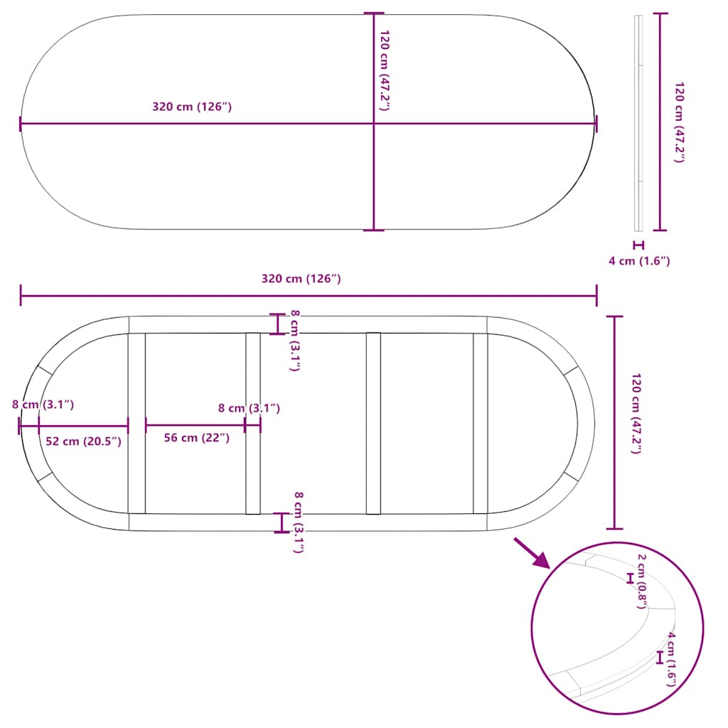 - Abmessungen: 320 x 120 x 4 cm (L x B x T)