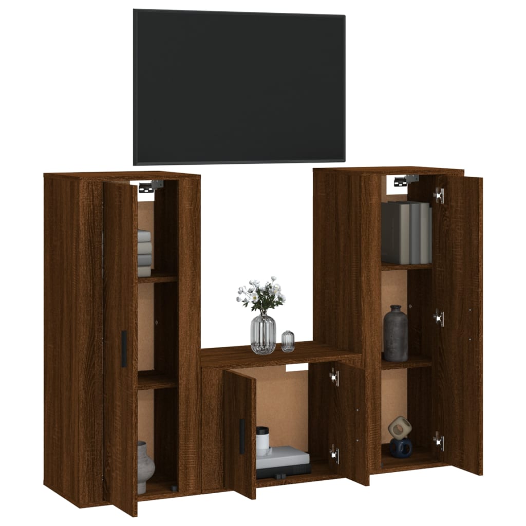 Dieses klassische TV-Schrank-Set wird mit seinem trendigen und dennoch praktischen Design zum Mittelpunkt deines Wohnzimmers. Robustes Material: Holzwerkstoff ist ein Material hoher Qualität mit glatter Oberfläche, das sich durch Festigkeit, Stabilität und Feuchtigkeitsbeständigkeit auszeichnet. Aus Holzwerkstoff gefertigt, lässt sich dieser TV-Schrank einfach reinigen.Viel Stauraum: Diese TV-Schränke bieten viel Stauraum, um all deine Zeitschriften, DVDs und andere Gegenstände gut organisiert aufzubewahren.Wandmontage: Der Medienschrank nimmt keine Bodenfläche ein. Er lässt sich einfach an der Wand befestigen.Praktische Türen: Schütze deine wichtigsten Sachen vor Staub, indem du sie hinter der Tür in dieser Medieneinheit verstaust. Gut zu wissen:Um die Montage so einfach wie möglich zu machen, wird jedes Produkt mit einer Anleitung geliefert.Schrauben und Dübel sind für die Befestigung an der Wand nicht im Lieferumfang enthalten. Wir empfehlen, speziell für deine Wände geeignete Schrauben und Dübel zu finden und zu verwenden. Im Zweifelsfall wende dich an einen Fachmann. Bitte lese und befolge jeden Schritt der Anweisungen.