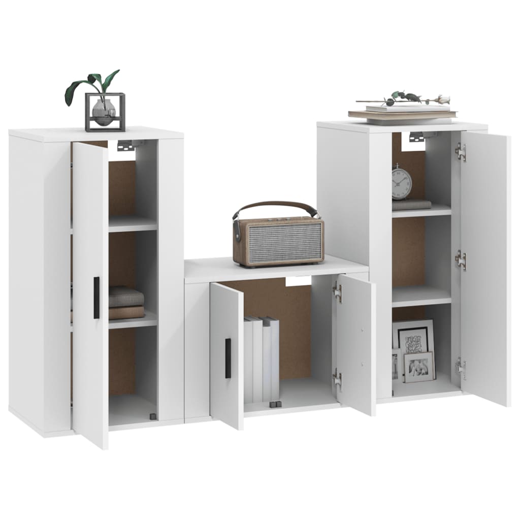 Dieses klassische TV-Schrank-Set wird mit seinem trendigen und dennoch praktischen Design zum Mittelpunkt deines Wohnzimmers. Robustes Material: Holzwerkstoff ist ein Material von außergewöhnlicher Qualität mit glatter Oberfläche, das sich durch Festigkeit, Stabilität und Feuchtigkeitsbeständigkeit auszeichnet.Reichlich Stauraum: Die TV-Möbel bieten reichlich Stauraum, um all deine Zeitschriften, DVDs und andere Gegenstände gut organisiert aufzubewahren.Wandmontage: Die TV-Konsole nimmt keine Bodenfläche ein, da sie sich einfach an der Wand befestigen lässt. Gut zu wissen:Um die Montage so einfach wie möglich zu machen, wird jedes Produkt mit einer Anleitung geliefert.Schrauben und Dübel sind für die Befestigung an der Wand nicht im Lieferumfang enthalten. Wir empfehlen, speziell für deine Wände geeignete Schrauben und Dübel zu finden und zu verwenden. Im Zweifelsfall wende dich an einen Fachmann. Bitte lese und befolge jeden Schritt der Anweisungen.
