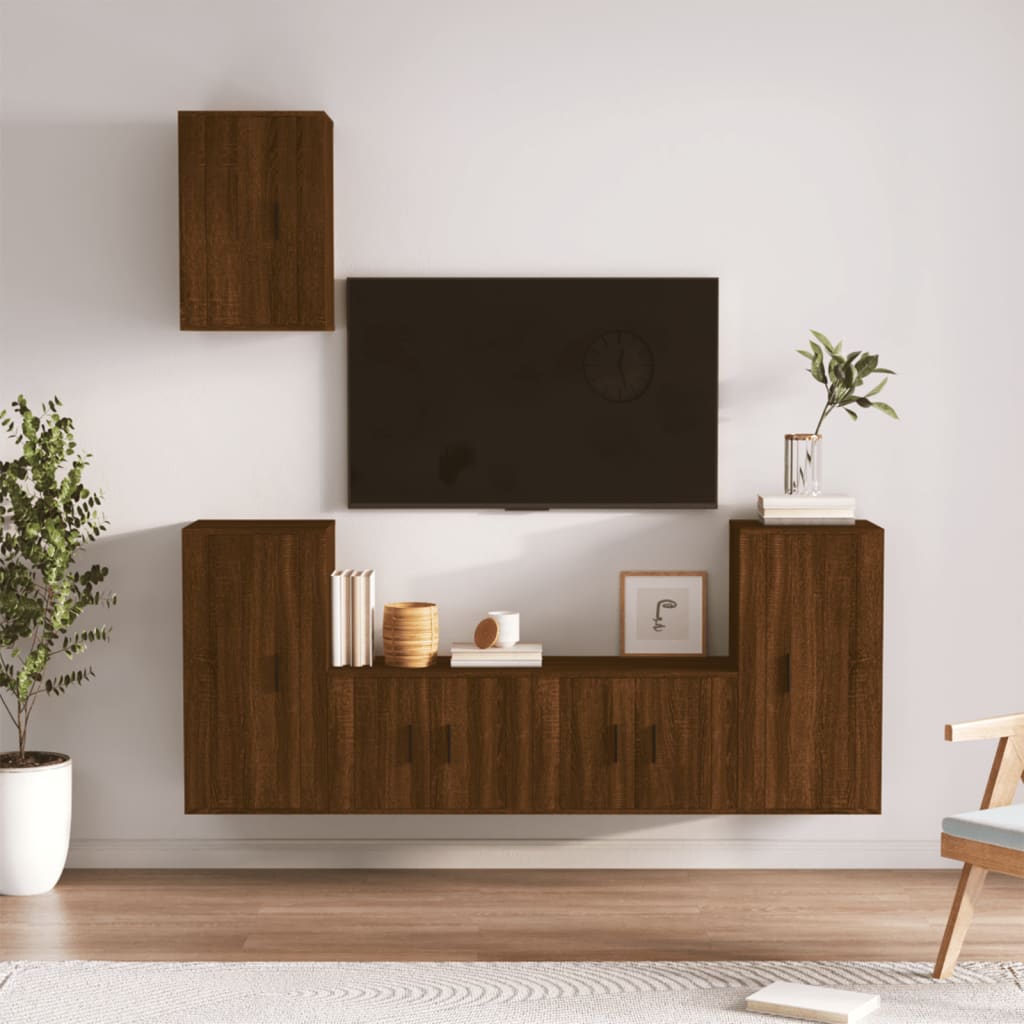 Dieses klassische TV-Schrank-Set wird mit seinem trendigen und dennoch praktischen Design zum Mittelpunkt deines Wohnzimmers. Robustes Material: Holzwerkstoff ist ein Material von außergewöhnlicher Qualität mit glatter Oberfläche, das sich durch Festigkeit, Stabilität und Feuchtigkeitsbeständigkeit auszeichnet.Reichlich Stauraum: Die TV-Möbel bieten reichlich Stauraum, um all deine Zeitschriften, DVDs und andere Gegenstände gut organisiert aufzubewahren.Wandmontage: Die TV-Konsole nimmt keine Bodenfläche ein, da sie sich einfach an der Wand befestigen lässt. Gut zu wissen:Um die Montage so einfach wie möglich zu machen, wird jedes Produkt mit einer Anleitung geliefert.Schrauben und Dübel sind für die Befestigung an der Wand nicht im Lieferumfang enthalten. Wir empfehlen, speziell für deine Wände geeignete Schrauben und Dübel zu finden und zu verwenden. Im Zweifelsfall wende dich an einen Fachmann. Bitte lese und befolge jeden Schritt der Anweisungen.