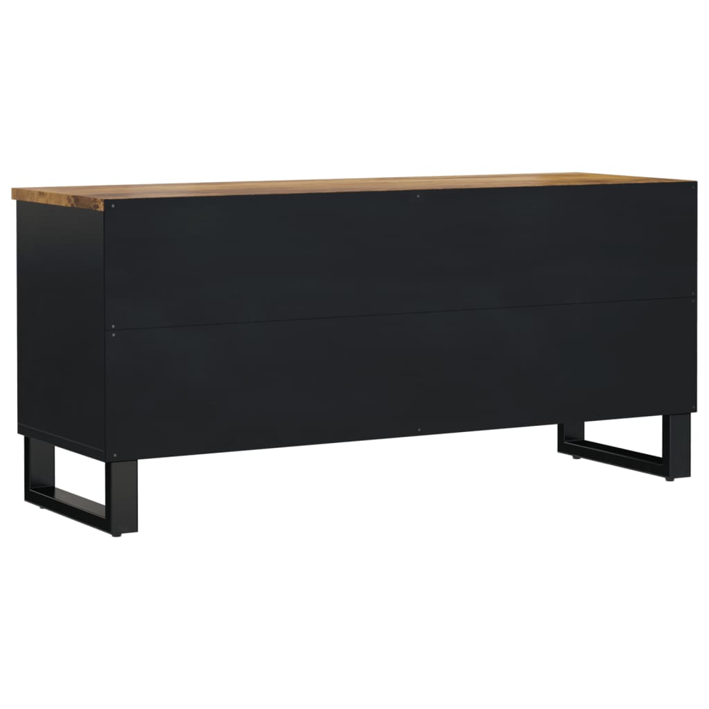 Mit seinem trendigen und praktischen Design ist dieser TV-Schrank die perfekte Wahl für dein Zimmer. Massives Mangoholz: Dieser Medienschrank besteht aus massivem Mangoholz in Kombination mit Holzwerkstoff. Massives Mangoholz ist ein starkes, tropisches Hartholz, aus dem robuste Möbelstücke hergestellt werden. Die optisch ansprechende Holzmaserung macht jedes Möbelstück zu einem Unikat.Reichlich Stauraum: Mit 4 offenen Fächern und 1 Schublade versehen, bietet der TV-Schrank reichlich Stauraum für deine Zeitschriften, DVDs und andere Gegenstände.Stabile Beine: Die Eisenbeine verleihen dem Lowboard Robustheit und Stabilität.Präsentation: Die stabile Oberplatte des TV-Schrank bietet den idealen Platz, um Dekoartikel wie Bilderrahmen und Pflanzen zur Schau zu stellen. Gut zu wissen:Um die Montage so einfach wie möglich zu machen, wird jedes Produkt mit einer Anleitung geliefert.Farben und Maserungen variieren von Möbelstück zu Möbelstück und machen jedes Stück zu einem Unikat. Die Lieferung erfolgt nach dem Zufallsprinzip, wodurch die Exklusivität und Individualität deines Möbels gewährleistet ist.