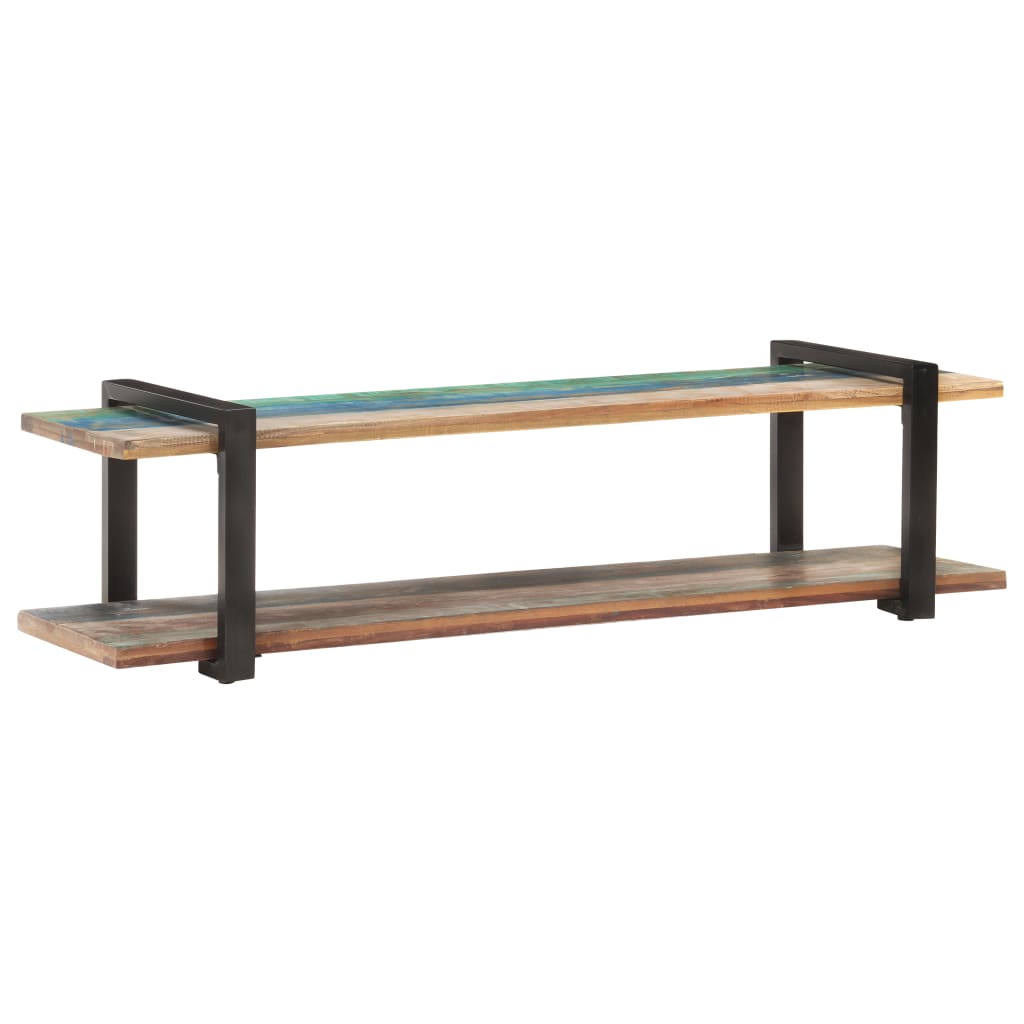 Dieser stilvolle TV-Schrank aus Holz im Industriestil wird zum Mittelpunkt Ihres Wohnzimmers oder Entertainmentbereichs. Er kann auch als Couchtisch, Sideboard, Lowboard usw. verwendet werden. Der TV-Schrank besteht aus Altholz, das aus Balken, Fußböden und Stützbalken von alten Gebäuden stammt, die abgerissen wurden. Er kann aus verschiedenen Holzarten wie Kiefer, Teak, Buche, Eiche, Zeder, Mangoholz, Akazie usw. bestehen. Dies bedeutet, dass das wiedergewonnene Holz die Eigenschaften dieser verschiedenen Holzarten beibehält. Altholz ist bereits gealtert, verwittert und getrocknet, sodass es nicht schrumpft oder sich verbiegt. Dieses Sideboard ist vollständig handgefertigt und die schönen Holzmaserungen machen jedes Möbelstück zu einem Unikat. Die pulverbeschichteten Eisenbeine sorgen für zusätzliche Stabilität. Im unteren Regal können Sie DVD-Player, Spielekonsolen, Streaming-Geräte und Medienträger ordentlich organisieren. Wichtiger Hinweis: Die Farben variieren von Stück zu Stück, dadurch wird jedes Möbelstück zum Unikat; die Lieferung erfolgt nach dem Zufallsprinzip.