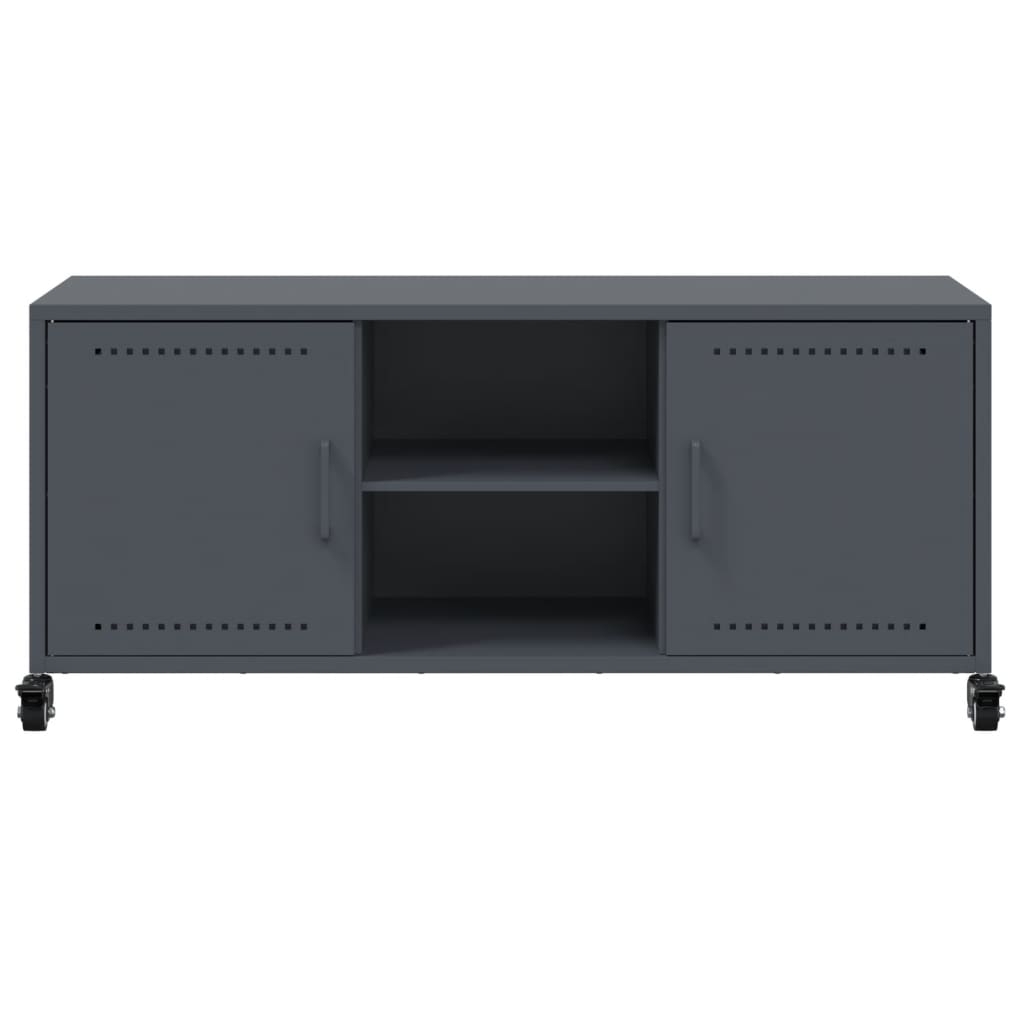 Mit seinem schlichten und dennoch praktischen Design passt dieser TV-Schrank perfekt zu deinem Wohnzimmer. Langlebiges Material: Stahl ist ein außergewöhnlich hartes und starkes Material. Er bietet Robustheit und Stabilität. Kaltgewalztes Stahlblech weist eine glatte Oberfläche auf und lässt sich präzise verarbeiten.Präsentation: Die stabile Oberplatte des Medienschrank bietet den idealen Platz, um Dekoartikel wie Bilderrahmen und Pflanzen zur Schau zu stellen.Viel Stauraum: Der TV-Ständer verfügt über 2 Türen und 2 Ablagen und bietet den idealen Platz, um all deine Zeitschriften, DVDs und andere Gegenstände aufzubewahren.Pflegeleicht: Dank seiner schmutzabweisenden Oberfläche lässt sich der TV-Schrank leicht abwischen und reinigen, um stets brandneu auszusehen.Einfaches Umstellen: Dieser Schrank verfügt über 4 Rollen und lässt sich daher flexibel und mühelos umher verschieben.