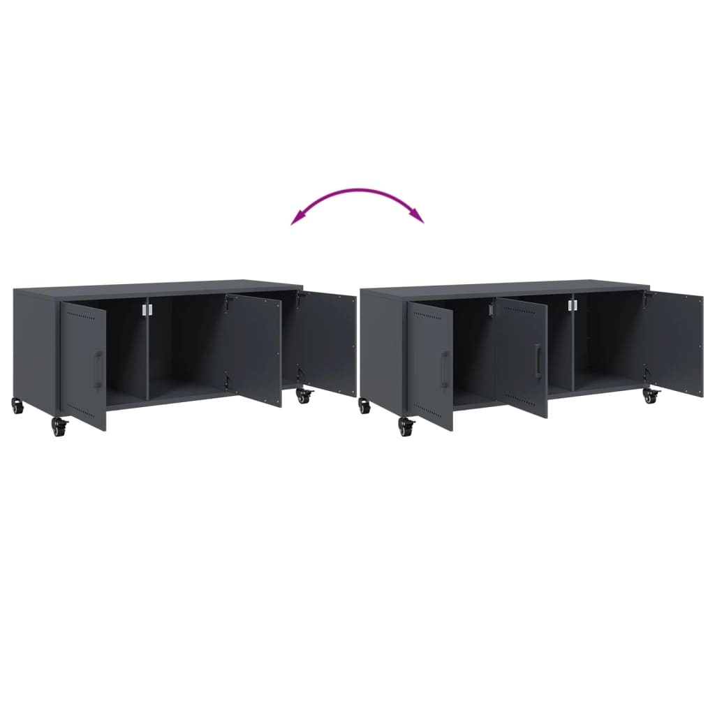 Mit seinem schlichten und dennoch praktischen Design passt dieser TV-Schrank perfekt zu deinem Wohnzimmer. Langlebiges Material: Stahl ist ein außergewöhnlich hartes und starkes Material. Er bietet Robustheit und Stabilität. Kaltgewalztes Stahlblech weist eine glatte Oberfläche auf und lässt sich präzise verarbeiten.Präsentation: Die stabile Oberplatte des Medienschrank bietet den idealen Platz, um Dekoartikel wie Bilderrahmen und Pflanzen zur Schau zu stellen.Viel Stauraum: Der TV-Ständer verfügt über 3 Türen und bietet den idealen Platz, um all deine Zeitschriften, DVDs und andere Gegenstände aufzubewahren.Pflegeleicht: Dank seiner schmutzabweisenden Oberfläche lässt sich der TV-Tisch leicht abwischen und reinigen, um stets brandneu auszusehen.Einfaches Umstellen: Dieser Schrank verfügt über 4 Rollen und lässt sich daher flexibel und mühelos umher verschieben.