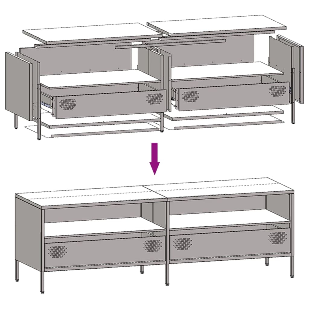 Dieser robuste TV-Schrank im Industrie-Stil ist eine zeitlose Ergänzung zu deinem Schlafzimmer oder Wohnzimmer. Stabiles Material: Das Gestell des TV-Schranks besteht aus kaltgewalztem Stahl. Dies ist eine Art kohlenstoffarmer Stahl, der im „Kaltwalzverfahren“ hergestellt und bei nahezu normalen Raumtemperaturen verarbeitet wird. Kaltgewalzter Stahl besitzt eine glattere Oberfläche, eine höhere Festigkeit und lässt sich präziser verarbeiten.Viel Stauraum: Der Schrank ist mit 2 Fächern sowie 2 Schubladen versehen und bietet dadurch viel Platz, um verschiedene Alltagssachen gut organisiert und in Reichweite aufzubewahren.Verstellbare Stellfüße: Dieses TV-Möbel ist mit vier Stellfüßen ausgestattet, um Bodenunebenheiten auszugleichen und Stabilität und Gleichgewicht zu gewährleisten.Einfache Reinigung: Der Schrank aus Metall ist mit einem feuchten Tuch leicht zu reinigen und erfordert wenig Pflege.