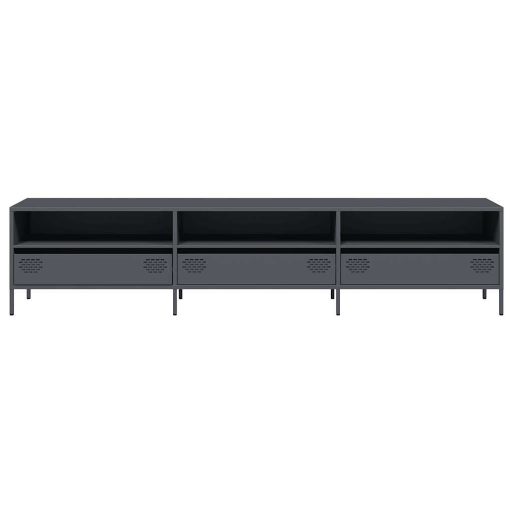 Dieser robuste TV-Schrank im Industrie-Stil ist eine zeitlose Ergänzung zu deinem Schlafzimmer oder Wohnzimmer. Stabiles Material: Das Gestell des TV-Schranks besteht aus kaltgewalztem Stahl. Dies ist eine Art kohlenstoffarmer Stahl, der im „Kaltwalzverfahren“ hergestellt und bei nahezu normalen Raumtemperaturen verarbeitet wird. Kaltgewalzter Stahl besitzt eine glattere Oberfläche, eine höhere Festigkeit und lässt sich präziser verarbeiten.Reichlich Stauraum: Mit 3 Fächern und 3 Schubladen versehen, bietet der Schrank reichlich Platz, um verschiedene Alltagssachen übersichtlich und griffbereit zu verstauen.Verstellbare Stellfüße: Dieses TV-Möbel ist mit vier Stellfüßen ausgestattet, um Bodenunebenheiten auszugleichen und Stabilität und Gleichgewicht zu gewährleisten.Einfache Reinigung: Der Schrank aus Metall ist mit einem feuchten Tuch leicht zu reinigen und erfordert wenig Pflege.