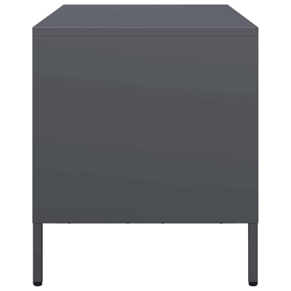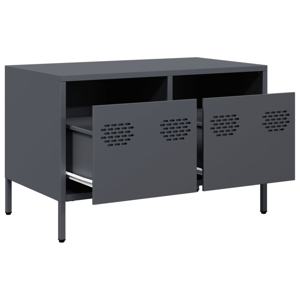 Dieser robuste TV-Schrank im Industrie-Stil ist eine zeitlose Ergänzung zu deinem Schlafzimmer oder Wohnzimmer. Stabiles Material: Das Gestell des TV-Schranks besteht aus kaltgewalztem Stahl. Dies ist eine Art kohlenstoffarmer Stahl, der im „Kaltwalzverfahren“ hergestellt und bei nahezu normalen Raumtemperaturen verarbeitet wird. Kaltgewalzter Stahl besitzt eine glattere Oberfläche, eine höhere Festigkeit und lässt sich präziser verarbeiten.Viel Stauraum: Der Schrank ist mit 2 Schubladen versehen und bietet dadurch viel Platz, um verschiedene Alltagssachen gut organisiert und in Reichweite aufzubewahren.Verstellbare Stellfüße: Dieses TV-Möbel ist mit vier Stellfüßen ausgestattet, um Bodenunebenheiten auszugleichen und Stabilität und Gleichgewicht zu gewährleisten.Einfache Reinigung: Der Schrank aus Metall ist mit einem feuchten Tuch leicht zu reinigen und erfordert wenig Pflege.